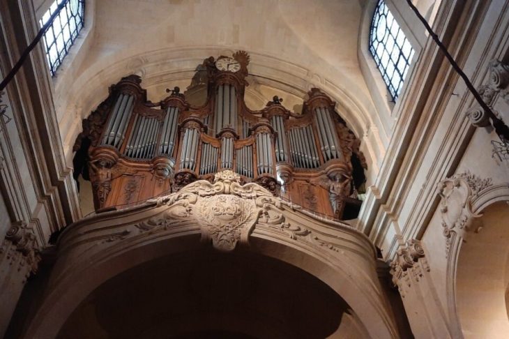 It reflects this somewhat cold nobility, softened by the delicacy of style in honor under Louis XV. The nave, with five spans, is chanted with pilasters engaged in a rather thin relief, cushioned by Corinthian capitals. They are framed with garlands of roses. On the other side of the façade, the stone tribune is supported by a large bow that is leaning on both sides on a console. It gets up in brace to wear the organ buffet of Clicquot. Above the large arcades, the Cathedral is illuminated by spectacular bays whose vaults penetrate the nave, according to the usual process used at that time. 93 meters high, the nave is covered with a penetrating vault.