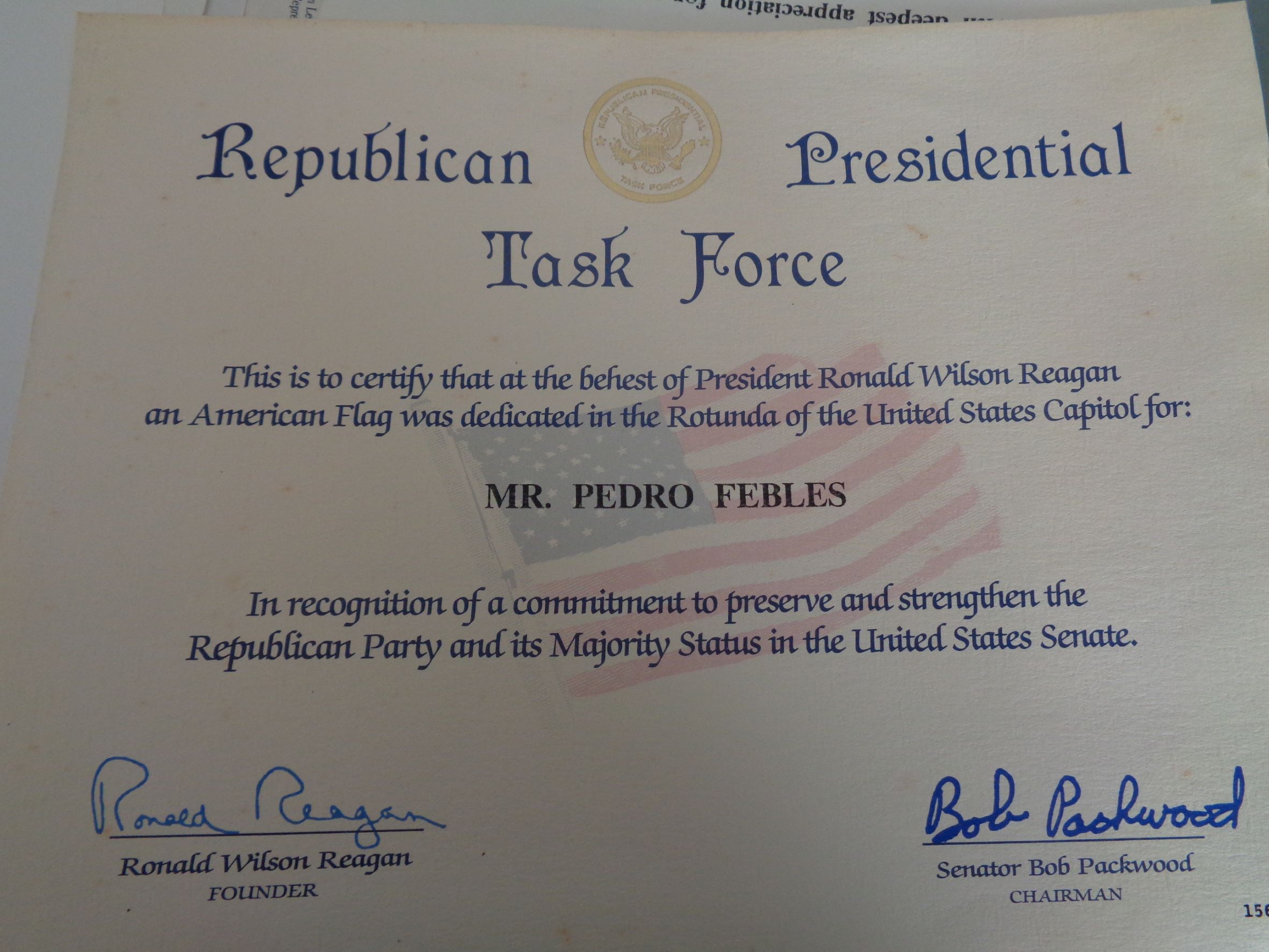 Perth Amboy Rep Pres task force recog PF c1988