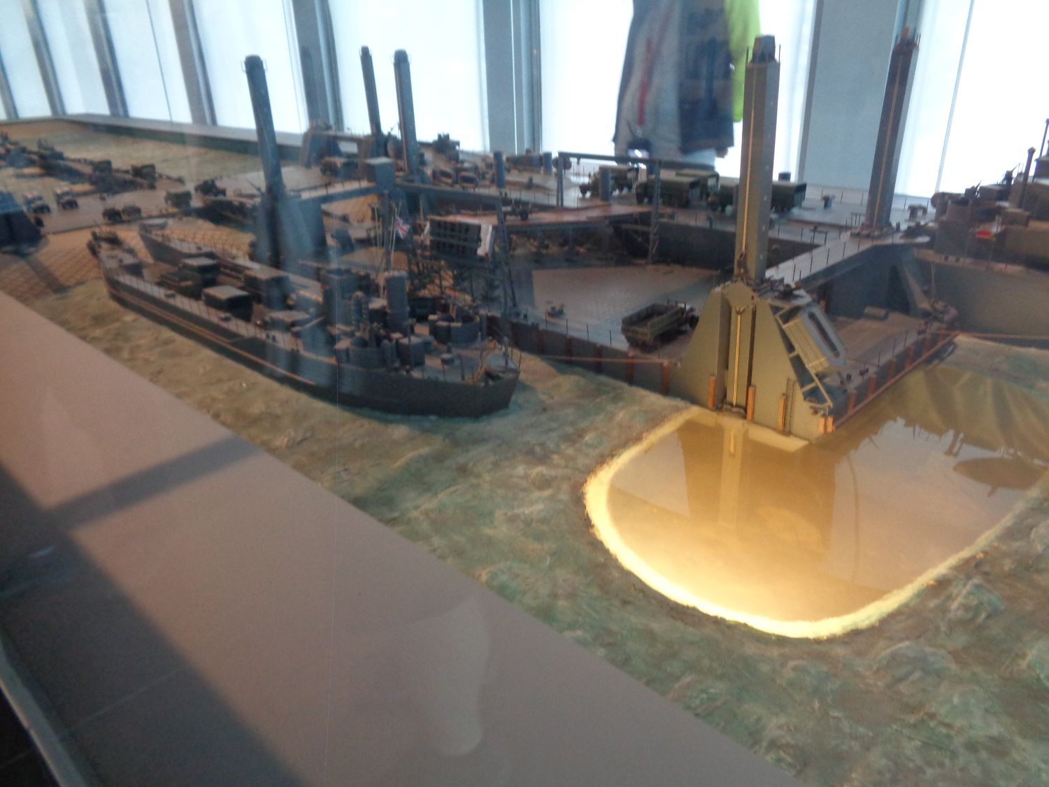 The museum is located on the esplanade bordering the beach opposite which the artificial harbor was built. Large bay windows allow visitors to observe the remains of the artificial harbor. Animated models of the pontoons and floating roads, as well as a diorama, provide an understanding of the construction and operation of the harbor. Various objects, weapons, photos, and uniforms are exhibited in different rooms dedicated to each nation: the British, the Americans, and the Canadians. Animated models of the pontoons and floating roads are also featured, with explanations from a guide and a diorama to help understand how the artificial harbor functions according to the tide. A 30-minute documentary film shot during the preparations for the D-Day landings is shown to conclude the tour.