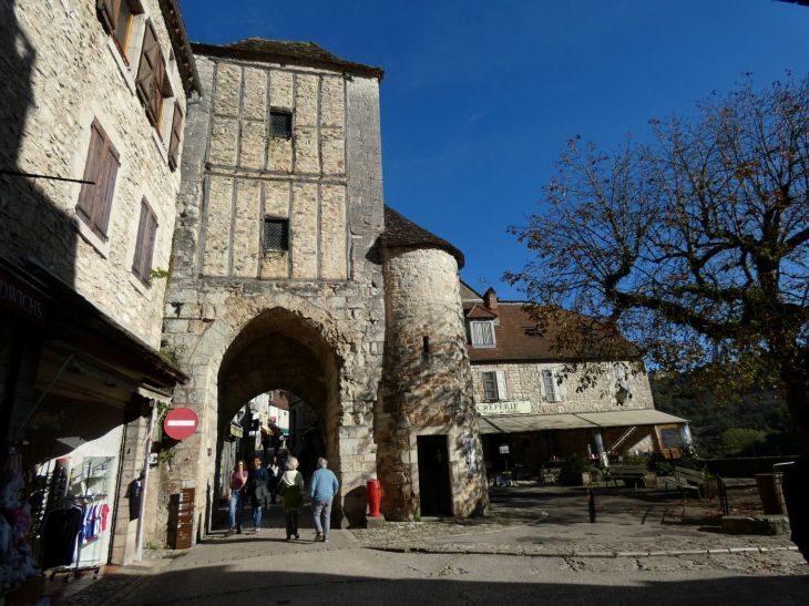 La porte Salmon or Salmon door was built on the main street that is rue de la Couronnerie and rue Roland-le-Preux, its Courtine which joins the cliff being an extension of the wall closing the religious city to the north. This is the only door of Rocamadour to have kept its tower, which thus dominates without presenting defensive devices , The passage is covered with a broken cradle. This door, composed of two stages, has a staircase turret. Each evening, it is closed with a wooden door, locked by a bar inserted in the barrier holes on each side of the door. Subsequently, a staircase was added to the location after the destruction of a strong house that dominated the Alzou valley. The Salmon door takes its name from the salmon, which was once very present in the ivers. At the time, this fish were so many of the Dordogne that local workers sometimes asked in their contracts, not to receive salmon more than three times a week.