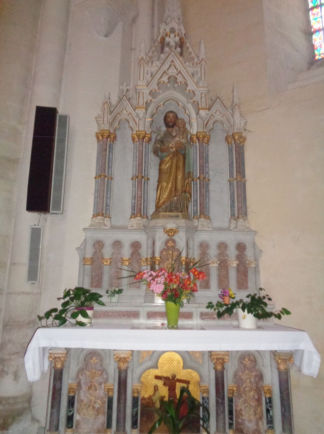 The town purchased the organ from the Church Notre-Dame of Thouars (see post) in November 1792. It features a Louis XVI-style oak case with a low base. The façade consists of three flat faces; the central one has 15 pipes surrounded by the lateral ones with 5 pipes. Flat pilasters with Corinthian capitals. A rectilinear entablature with a cornice, the central part topped by a triangular pediment with a large cross. A console window. Two reservoirs with parallel folds and two soundboards with engravings and registers. The registers have a square section with porcelain.