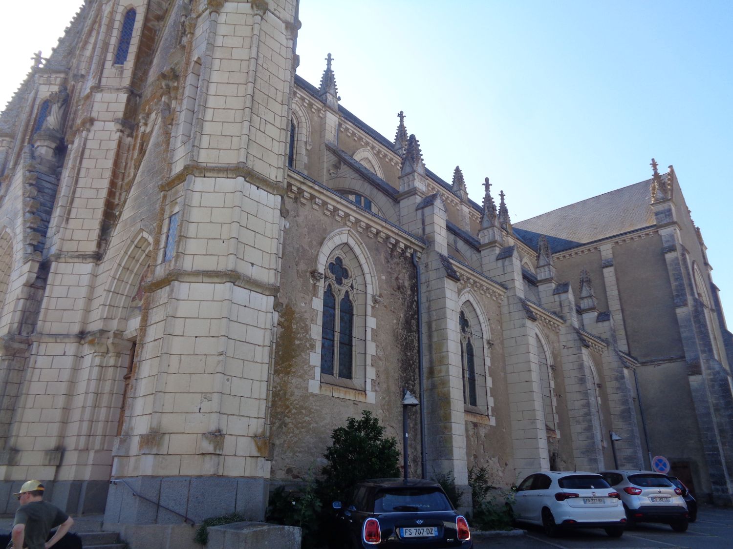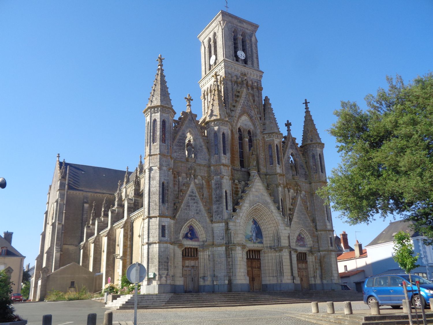 The square bell tower has two floors, one solid with arcades, the other with bays, but the originally planned spire was never built. The bell tower roof was redone in 2002. The central nave is reinforced on the outside with flying buttresses. The central nave, lit by tall windows, is flanked by lower side naves also with windows. The naves are approximately 40 meters long and 20 meters wide. At the front, the Last Supper, between an unidentified saint accompanied by a bird and John the Baptist. The tabernacle, whose door is decorated with the Lamb (Christ), is surrounded by a Nativity and a Deposition from the Cross, and on the wings by Saints Peter and Paul. Above, a metal cross between two angels is flanked by three saints on each side: Our Lady of the Seven Sorrows, Saint Henry, a bishop, a pope, Saint Expeditus, Saint Radegonde. At the very top, more angels. The altars of the transept are preceded by a stone communion table. On the left, on the front of the first altar, Mary appears between her parents Anne and Joachim. On the front of the second altar, we have the Death of Mary; above the and on the wings by Saints Peter and Paul. Above, a metal cross between two angels is flanked by three saints on each side: Our Lady of the Seven Sorrows, Saint Henry, a bishop, a pope, Saint Expeditus, and Saint Radegonde. At the very top, more angels. The altars in the transept are preceded by a stone communion table. On the left, on the front of the first altar, Mary appears between her parents Anne and Joachim. On the front of the second altar, we have the Death of Mary; above it, the Apparitions of Mary at Lourdes and La Salette. In the right arm of the transept, on the front of the first altar, Jesus shows his Heart to the apostles, between an angel holding a chalice and an angel holding a cross. The tabernacle with a Heart is flanked by the Apparition of Jesus to Marguerite-Marie Alacoque, and Jesus and the Samaritan Woman. On the upper floor, a Sacred Heart is placed between angels carrying the instruments of the Passion. On the front of the last altar: the Holy Family. Following the Second Vatican Council (1962-1965), to allow celebrations facing the people, which was already practiced during the first Christian millennium, a wooden altar was installed in 1967 at the entrance to the choir. Statuettes of the four evangelists with their symbols decorate the front. Jesus is depicted in front of the ambo. This is probably the reuse of panels from the pulpit. The communion table of this facade, with a porch bell tower, punctuated by four pinnacles, has three doors whose tympanums were decorated in 1966 with beautiful ceramic compositions, donated by an anonymous parishioner, They represent: Mary and the Child Jesus. the resurrected Jesus, with on the right, in the night, the destruction of Cerizay by the nazis on August 25, 1944, the Baptism of Jesus by John the Baptist. On the gables above the tympanums are the statues of Jesus, with, on the book, an alpha and an omega, the first and last letters of the Greek alphabet: “I am the Alpha and the Omega, the Beginning and the End”, between the apostles Peter on the left, and Paul on the right with the sword of his martyrdom. The square bell tower has two floors, one solid with arcades, the other with bays, but the originally planned spire was never built. The bell tower roof was redone in 2002.