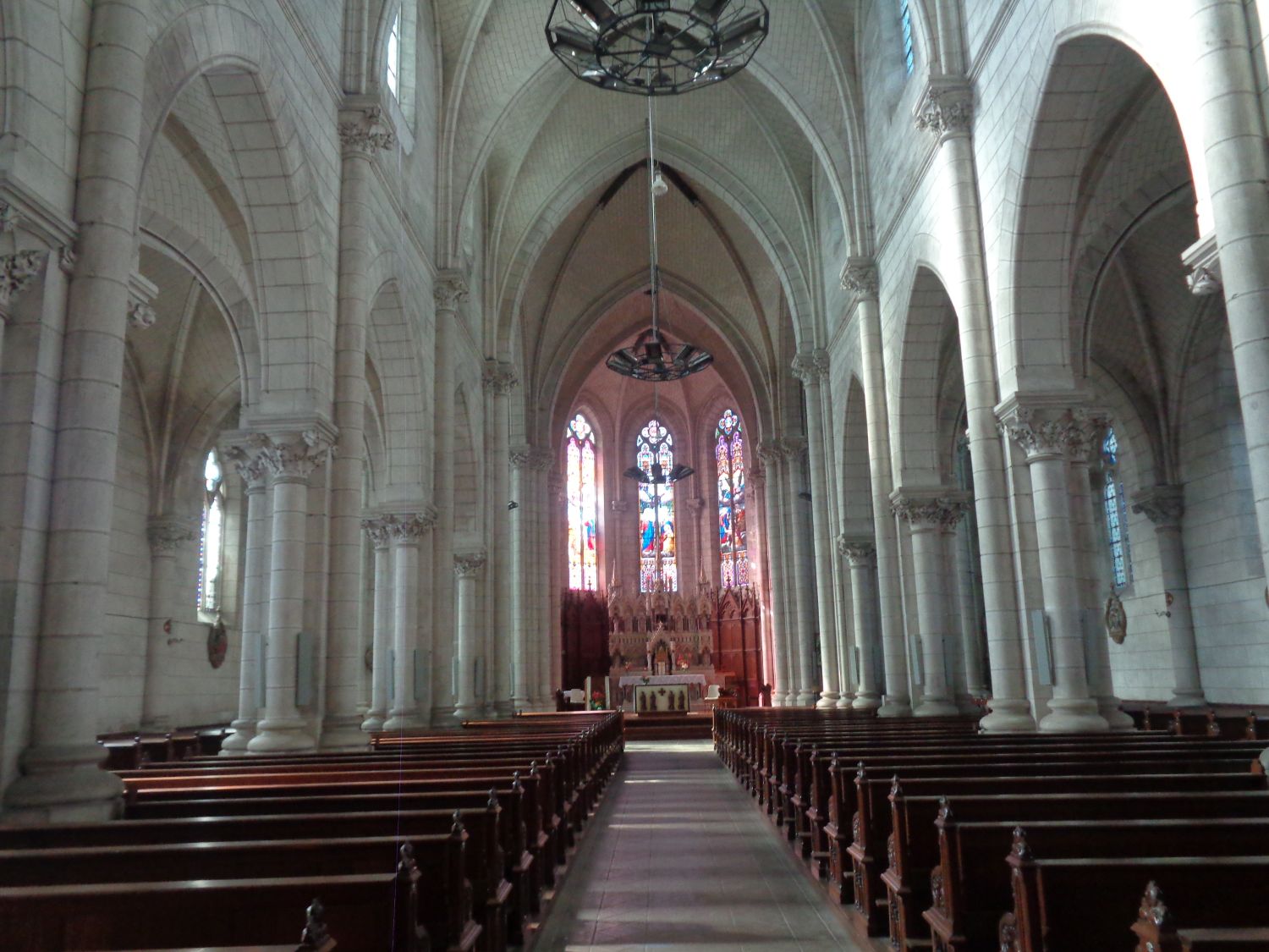 The Church of Saint Pierre on its stained glass windows ! On the left ,1st apse stained glass window offered by Christian mothers, from bottom to top, Nativity of Mary, Anne teaches Mary to read, Presentation of Mary at the temple. 2nd apse: stained glass window on the left, from top to bottom, Visitation, Apparition of Mary at Lourdes, Annunciation; stained glass window on the axis, Flight into Egypt, Mary seated with the Child, Presentation of Jesus at the temple; stained glass window on the right, the Holy Family, Apparition of Mary at La Salette, Jesus among the doctors. On the right. 1st apse: stained glass window on the left, from bottom to top, Jesus crowned with thorns, Jesus in the Garden of Olives, Jesus carrying his cross meets his mother; stained glass window on the axis, Adoration of the Shepherds, Last Supper (Jesus shows his Heart to John), Crucifixion; Right stained-glass window, Jesus falls under the weight of the cross and Veronica wipes his face, Christ appears to Marguerite-Marie Alacoque, Entombment. 2nd apse, from bottom to top: Marriage of Joseph, Joseph and the Child Jesus, Death of Joseph. Most of the stained-glass windows, executed between 1890 and 1892.