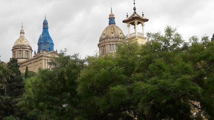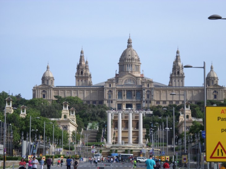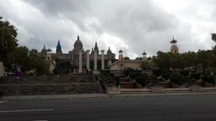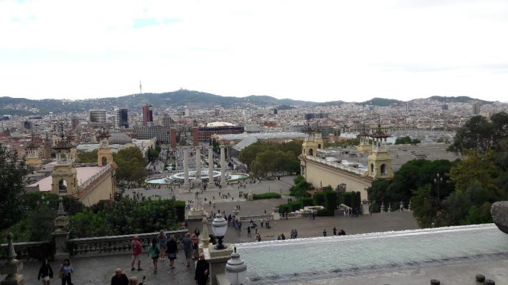 There are several pavilions built on the occasion of the International Exhibition of 1929, the majority of which are now part of the Fira Barcelona Congress hall , which It organises some of the most important salons, exhibitions and exhibits in Spain. The itinerary of the avenue is marking of water columns on both sides of it, culminating in the magic fountain and the waterfalls of Montjuic. And of course, what better view down from Montjuic! MNAC museum on my back looking down to plaça de Josep Puig i Cadafalch to the font Magica to the Torres Venecianes and the plaça de Espanya, superbe.