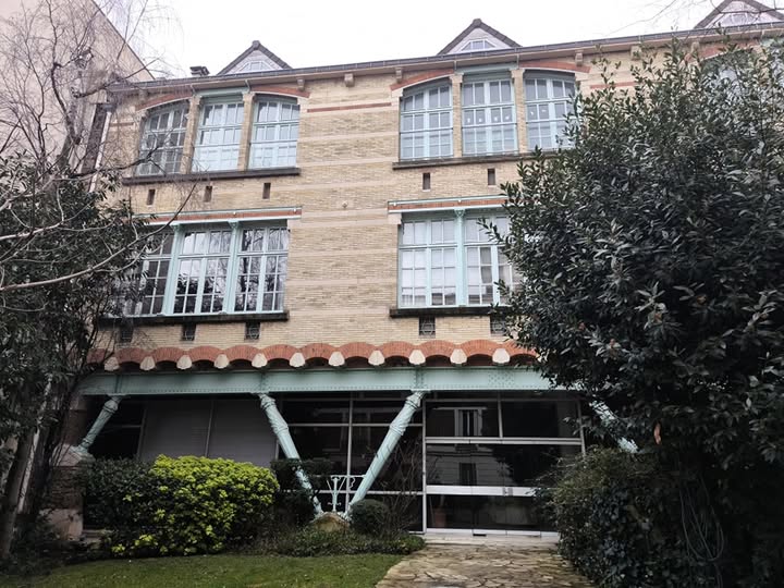 The Avenue de La Frillière is a street in the 16éme arrondissement of Paris, a public street, inside the villa Mulhouse. It begins at 41, rue Claude-Lorrain and ends at 20, rue Parent-de-Rosan. This avenue is named after a residence located in Genillé, in dept 37 Indre-et-Loire, belonging to the owner of the land on which it was traced. Notable buildings here are at No. 10 bis: villa Claude-Lorrain, private road in villa Mulhouse. No. 11: Sacré-Cœur school, (now closed -see photo) by the architect Hector Guimard in 1895. The main facade on the street, the roof, the ceiling of the old courtyard, the iron and cast iron banister of the old interior staircase is nice, The cast iron pillars are stylized and announce Art Nouveau. Through this constructive audacity, we can also see in Guimard the precursor of a certain Le Corbusier who would make him one of the pillars of his constructive principles! The façade is brightened by courses of red brick and ochre bricks. Transformed into a residential building, it is perfectly visible from the street.
