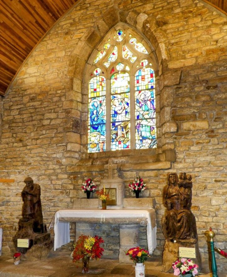 At the exit of the 15th station, a large esplanade with an altar and the benches, extends in front of the Chapelle Saint-Joseph Chapel. Father Binard’s tomb niche is erected with the stones of the ruins of a neighboring chapel. He rests in this Saint-Joseph Chapel. The chapel, blessed on August 15, 1962, rebuilt with the ruins of the Chapel of Mont de Guéhenno.