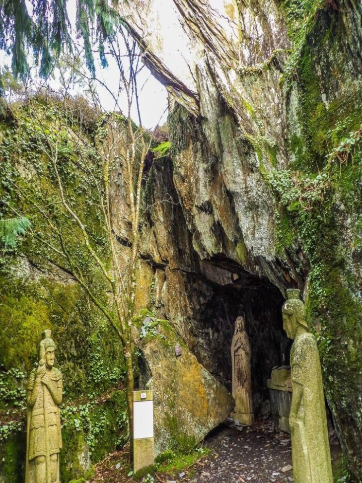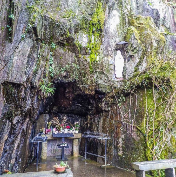 To the right of the first station, there is a replica of the Lourdes grotto/cave. The niche welcoming the statue of the Holy Virgin would have been dug in chisel by a single volunteer. It would have been made with iron soil to resist bad weather. The blessing of this cave took place on May 1, 1949, a Marian year. It was completely renovated in the 1st half of 2005. The Abbé Binard created the replica of the Lourdes cave in 1948-49.