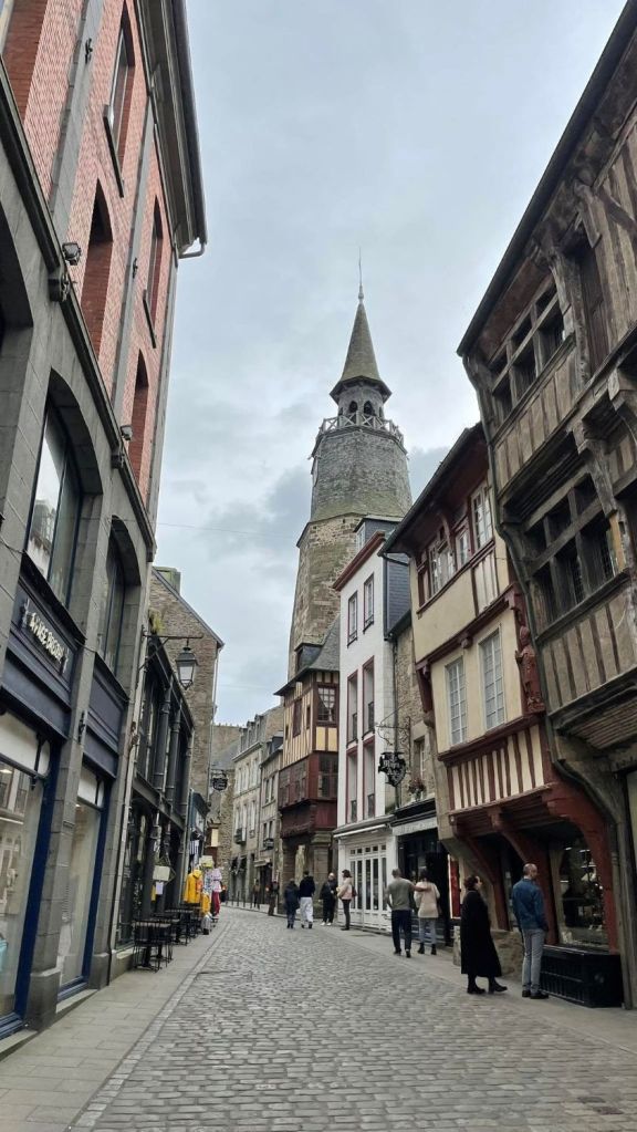 The history of this tour de l’Horloge (see post) or Clock Tower begins at the end of the medieval period, that is to say at the end of the 15C and beginning of the 16C. The construction of the Clock Tower began during the reign of the Duke of Brittany François II, when the first stone was laid by Jean II de Rosnyvinen, governor of the city between 1471 and 1481. It was only in 1507 that the daughter of François II issued a letter of patent authorizing the installation of a clock on the tower, thus making the municipal tower a real belfry. A clock that is also famous was built and equipped with an exceptional mechanism still visible today on the ground floor of the building. Thanks to this clock, Dinan became one of the first Breton towns to have a belfry, at the same time, a bell was installed, named the Duchess Anne, an obvious tribute that resonates throughout the town… See before it on the pic the wonderful medieval house by 27 rue de l’Horloge.