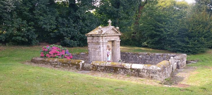 The Fontaine de Notre Dame de la Clarté de Carmes located 150 meters from the Carmés chapel, is of Neo-classical style in granite, it must date from the end of the 18C beginning of the 19C. The triangular pediment is surmounted by the cross. The niche houses a polychrome statue of the Virgin and Child. The water from the fountain is said to be beneficial for treating eye ailments.