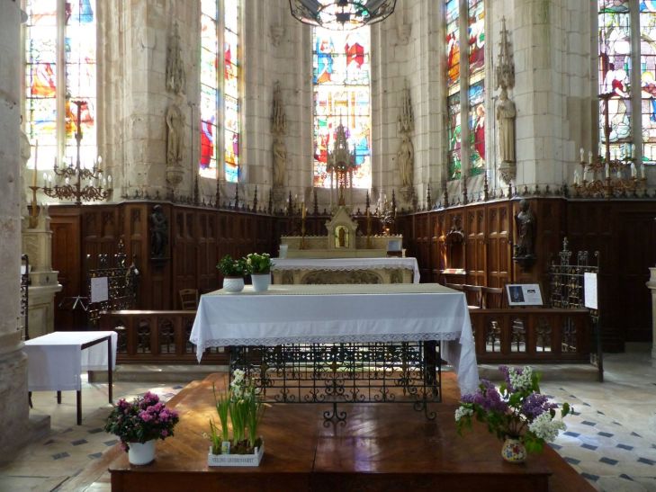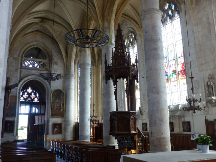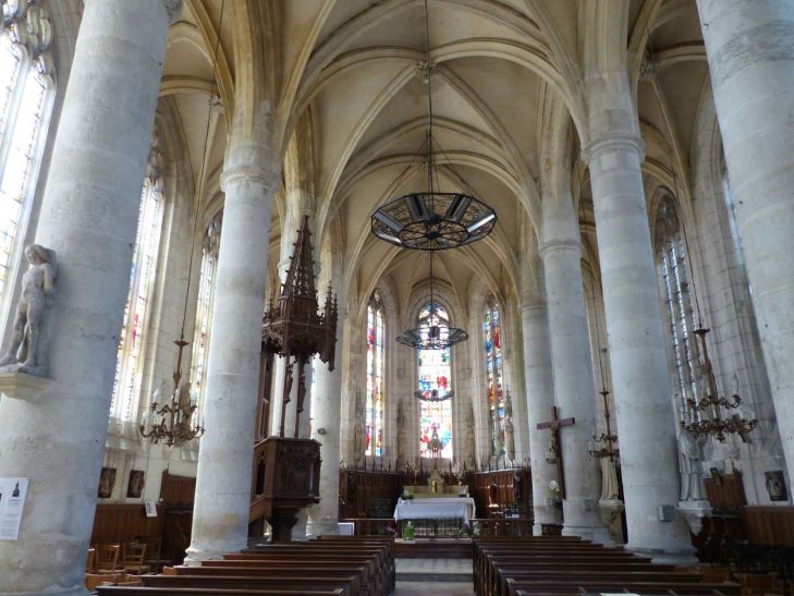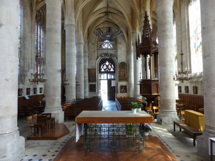 The interior of the Church Sainte Madeleine retains its 19C arrangements with its paneling, pulpit and stained glass. Ex-voto recall the devotion of the Seine sailors. Fragments of the original stained glass window of the axis bay remain done from around 1550, another old stained glass occupied a window of the nave. These two windows were restored in 1947, Between 1892 and 1895, the other 15 stained glasses devoted to the life of Christ, the Virgin, Saint Joseph, Clovis, the Visitation were done, The Georgette Jeanne bell, weighs 1.017 kg and has a diameter of 1.24 meters at its base.