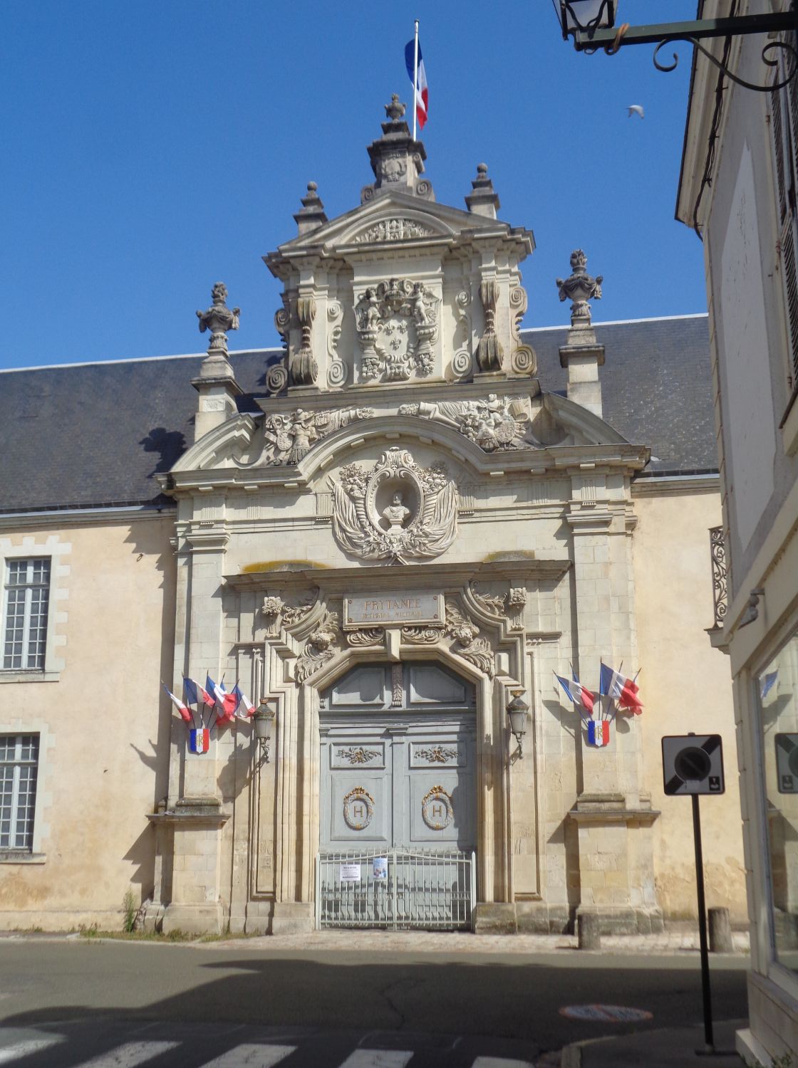 Its careful composition is characteristic of French architecture of the time: a search for symmetry, an emphasis on vertical movement, and the use of elements from ancient architecture. The bust of Henri IV, in the niche above the door, the royal coat of arms, and the royal crest testify to the Jesuits’ desire to preserve the memory of the college’s founder.