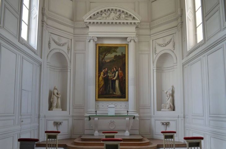 The Château de Versailles on the Petit Trianon, see Chapel: https://en.chateauversailles.fr/discover/estate/estate-trianon/petit-trianon#the-ground-floor