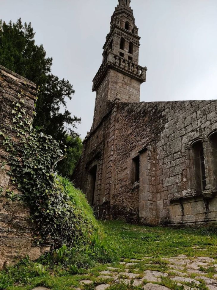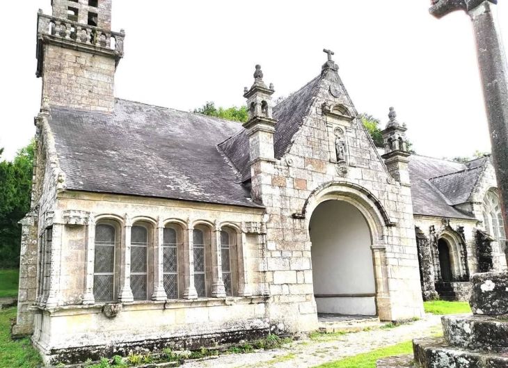 The Chapelle Notre-Dame , included with the triumphal arch, the cross and the ossuary are 13C, partly rebuilt in 1721 and 1753 and restored in 1860. This is the former chapel of the former castle. It includes a nave of six bays with side aisles, a transept and a choir. The oldest parts of the chapel date back to the last quarter of the 13C and have been remodeled at several times, notably in the 15-16C, and 17-18C. It contains the tombstone of Jeanne de Trésiguidy, Viscountess of Faou (dated 1324). The monumental entrance dates from the end of the 15C. The bell tower with domes and lanterns dates from 1753. The exterior walls date from the 16C. The southern porch, restored in 1726, dates from 1722. The six-bay nave dates from the 13-14C. The Beaumanoir-type canted apse bears the date 1691 at the bottom of the southern gable. Inside the porch, above the chapel door, is a beautiful wooden statue of the Virgin Mary 18C. The western portal dates from 1753. The altarpiece of the high altar is late 17C. The altar of the rosary altarpiece dates from the 17C: it was redone in 1815. The Saint Barbara altar comes from Pont-de-Buis. The confessional and the communion table date from the 18C. The Chapelle Notre Dame contains beautiful statues from the 15-18C: Saint Herbot (in stone, 15C), Saint John the Baptist (in stone), Saint Crispin, Saint Crispinian, Virgin Mother (in wood, 17C), Pietà (in wood, 17C), Saint Nicholas (in wood, 16C), Saint Maudez (in stone, 15C), Saint Gregory (in wood, 16C) and a stone group of Saint Anne and the Holy Virgin, holding the infant Jesus on her knees (15C).