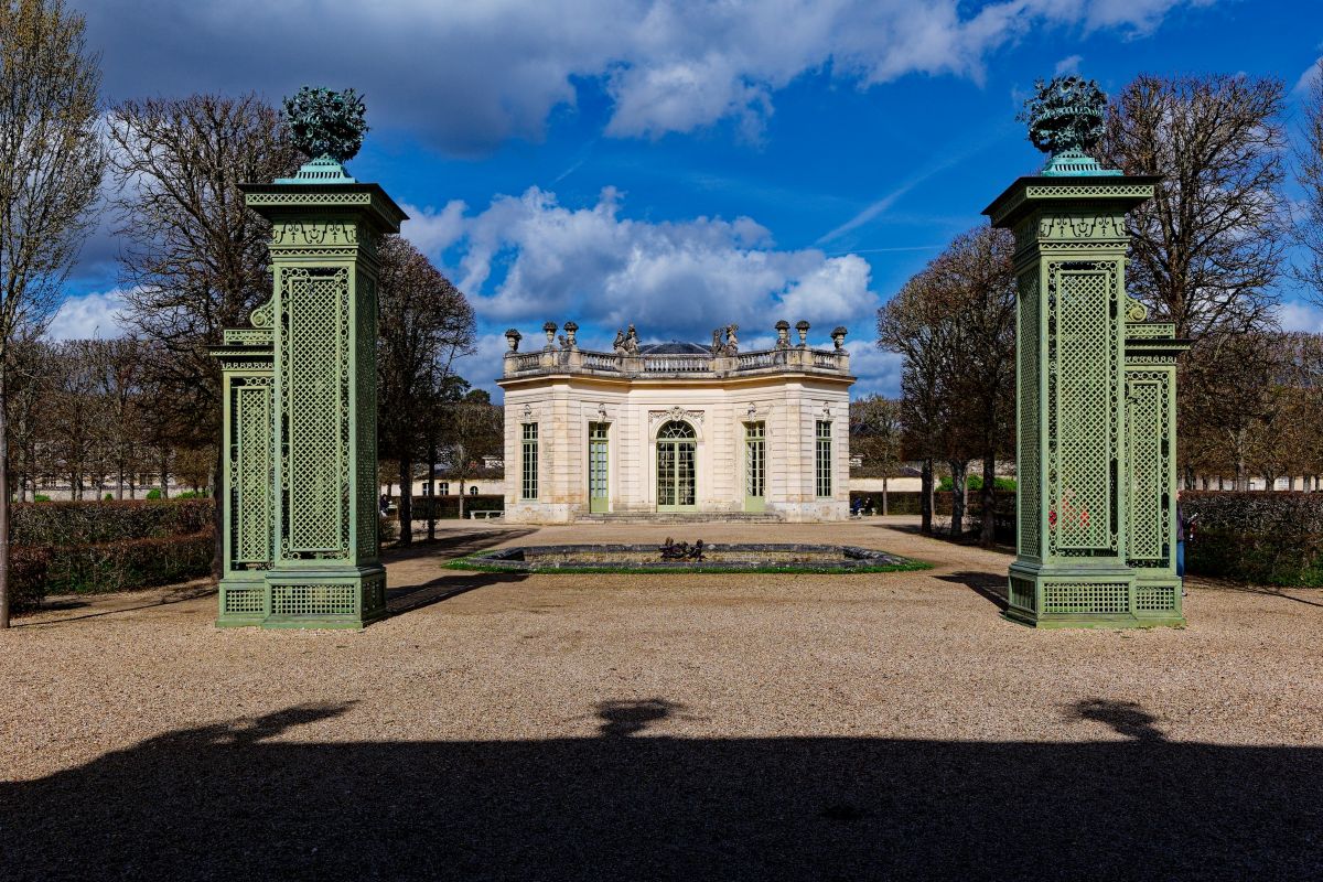 A bit of history tell us that at the end of 1744, King Louis XV returned to stay at the Palais de Trianon, abandoned for several decades, but of which he had a pleasant memory of his childhood.The Marquise de Pompadour, mistress of the king for two years, supports this project, in order to distract Louis XV from his melancholy and his sadness. From 1749 a new garden was set up on the land located east of the castle built by Jules Hardouin-Mansart, first built a menagerie, very different from that of Louis XIV, more exotic, because it is only intended to welcome domestic animals: chickens, cows and sheep the king and his favorite appreciate the “beautiful hens” and like to taste dairy products ;but the center of perspective is a small pavilion allowing to immerse themselves in this new garden: The French pavilion, then called the pavilion of the new menagerie, is intended for the game, the snack or the concert recreations. With the adjoining garden, the place is called upon to become the seat of a harmonious society, lit by the wise precepts of the physiocrats, Considered as the paragon of the Louis XV style, the pavilion is abundantly adorned with projections started in the spring of 1749, it is empty and covered in August and ready to accommodate flower vases and sculpted children’s groups forming depreciation above the balustrade , The works are completed in the spring of the year 1750 and the lambris and interior decorations are done in the Fall, Marie-Antoinette, who took possession of the Domaine du Petit Trianon in 1774, did not make any modification to the pavilion, the only substantial contribution to the French garden being the construction of its small theater. During the French revolution, the French pavilion, like the entire Domaine du Petit Trianon, is abandoned, then stripped of its furniture during auctions which began in August 1793, Under the Directory, it is a coffee shop fitted, for the occupants of the Petit Trianon transformed into a hotel, and the French garden is the place of popular balls mixing on the occasion Illuminations and fireworks while the Petit Trianon resumes its rank of palaces under the Impulse of Napoleon Ier, a restoration of the pavilion was undertaken in 1806, These modifications have not, however, having continued: the Corinthian columns are taken up and the new capitals are created in winged or scroll capitals; An eagle is painted on the dome, taking off towards Empyréa; The paneling are covered with gray and blue tones, the chimneys withdrawn. In 1810, a circus was installed nearby in order to give a representation of the Franconid brothers. At the peak of imperial life in Trianon, the following year, Marie-Louise used the French pavilion as part of the Empress Festival; on this occasion, it draws up, as in the previous century, two major blue and white striped coutil tents with a red woolen fringe, The building was restored for the first time in the 19C, but the last campaign, led in 2008 thanks to the patronage of Breguet watches, gives the pavilion its original state with the two marble chimneys as well as the hood of the groove are restored. The interior shutters are recreated. Finally, the organization of small wings is returned according to the original configuration: indeed, under Louis XV, two of them, reserved for the service, are completely separated from the central salon, and their access is only possible by the exterior, The work of 2008 therefore restores these old partitions , Anecdote I like the Pavillon Français sometimes served as a frame for filming for cinema as the popular 2005 film « Marie-Antoinette » directed by Sofia Coppola.