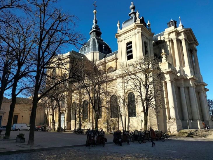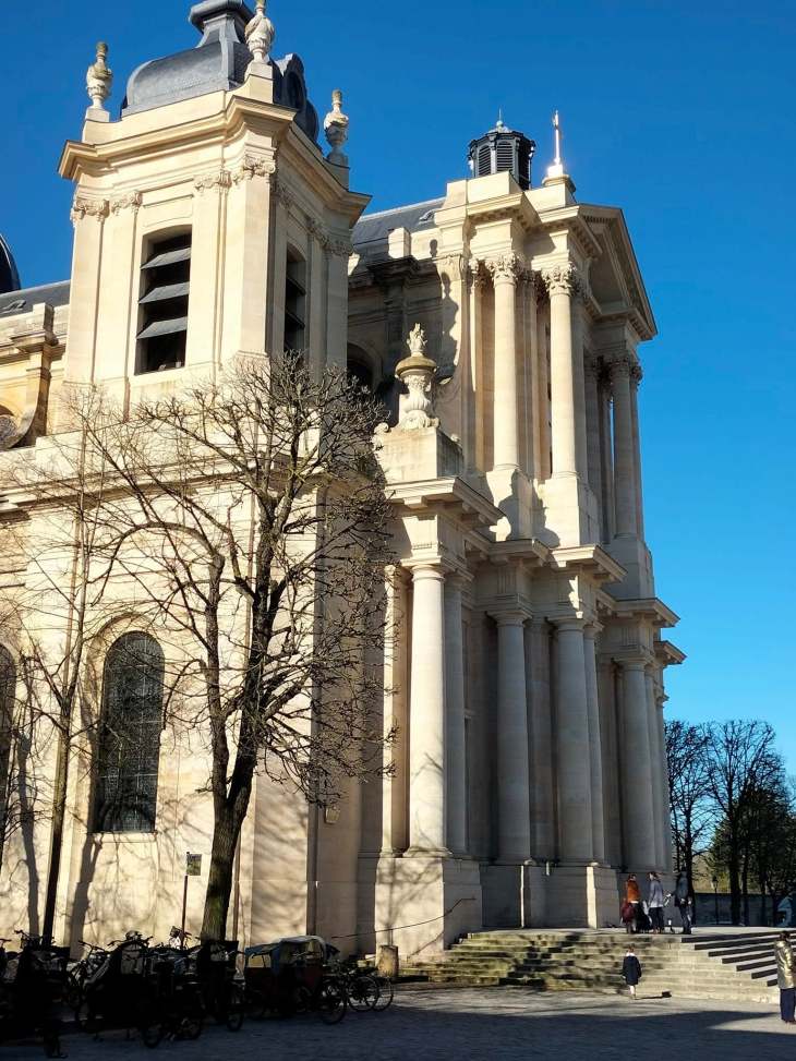 The Parc-aux-Cerfs neighborhood owes its development to the will of King Louis XIV, However, the church was completed by Louis XV, who fulfilled the royal promise. It began with a chapel, which was attached to the Notre-Dame Collegiate Church . Built between 1742 and 1754, the Saint-Louis Church is a classical-style construction, The Cathédrale de Saint Louis was built by the architect Jacques Hardouin-Mansart de Sagonne. It was blessed on August 25, 1754, Saint Louis Day, and chosen as a Cathedral for the creation of the Bishopric of Versailles in 1802, (as the French revolution Concordat did not want to name the Royal Notre Dame Collegiate Church (see post), but was consecrated only in 1843. The facade, adorned with Corinthian and Doric columns is flanked by two lateral towers for the bells, capped with bulbs characteristic of the rock-style, gilded. A dome topped by a baluster-shaped arrow, also gilded in the past, is arranged over the cross-aisle.