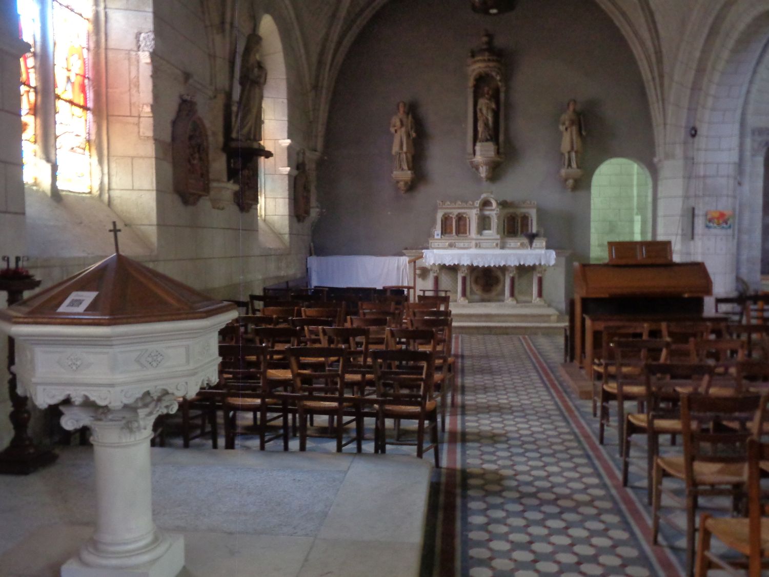 The Church Saint-Laurent original was replaced in the late 11C and early 12C by a single-nave church, of which the base of the bell tower and the half-domed choir still remain. The church also has 20C stained-glass windows, including one depicting the bombing of the Montlouis-sur-Loire bridge in May-June 1944. From the exterior, the church appears relatively imposing, with a single nave bordered on the right and left by two wide bays. A remarkable 16C sundial adorns one of the exterior walls, as does a strange representation of a barge. It must be said that since the Loire river was not far away, the town was made up of many mariners and traders.