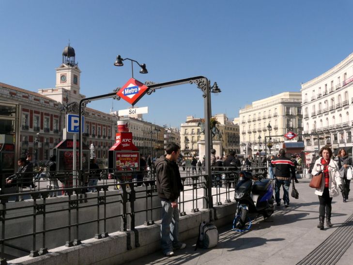 The Sol is a multimodal station located beneath the Puerta del Sol, in the neighborhood of the same name in the Centro district. Underneath you have the lines 1, 2, and 3 of the Metro, and C-3 and C-4 of the Cercanias or commuter rail network, converging at this station. The platforms of Line 1 entered service in 1919 when the first metro section in the city opened between Sol and Cuatro Caminos. The Line 2 station was added in 1924, located above and perpendicular to Line 1. The station for Line 3 was added in 1936, located more or less at the same level as Line 1 and also perpendicular to Line 2. The access is done by the Puerta del Sol Lobby for both metro and Renfe commuter trains, At exit Puerta del Sol, 7 go up to corner of Calle Carretas , Calle del Carmen, At exit Puerta del Sol, 12 go up corner of Calle del Carmen , and Calle de Alcalá, At exit Puerta del Sol, 13 go up at corner with Calle Montera, The commuter trains at Sol go up at Puerta del Sol, 5 corner with Calle de Alcalá and Carrera San Jerónimo, Puerta del Sol Elevator 13 corner with Calle Montera, The main lobby go out at Calle Mayor with Puerta del Sol, 8 corner of Calle Mayor 2 and Calle Arenal with elevator, Puerta del Sol, s/n corner of Calle Mayor, On the Preciados Lobby go up on Calle Preciados , 3, The Shopping Center Open according to shopping center hours Direct access to El Corte Inglés (see post).