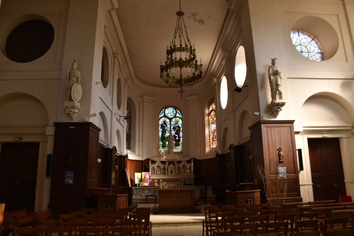 The original Church Saint Georges was built in 1216 to replace the castle chapel after the destruction of the castle. Only the base of the tower was preserved for the new church. Between 1770 and 1781, a new church was built, on the initiative of the Duke of Penthièvre, Lord of Crécy. Its plan adopts that of a Latin cross with projecting transepts and side aisles. The apse is semicircular. Buttresses support the medieval tower, which is extended by a bell tower. The rectangular portal is surmounted by an old inscription from the time of the French revolution when the church was transformed into a Temple of Reason. It also contains the names of the church’s patron saints. The church was restored in 1972. It is one of the largest rural churches in Seine-et-Marne (dept 77), with its apse and portal dating from the early 13C. The Church Saint Georges has retained its 12C portal. The apse vault is a cul-de-four, composed of six parts ribbed ridges. The apse has two levels. Its bell tower, dating from the 13C is the only vestige of the collegiate church that previously stood on this site.