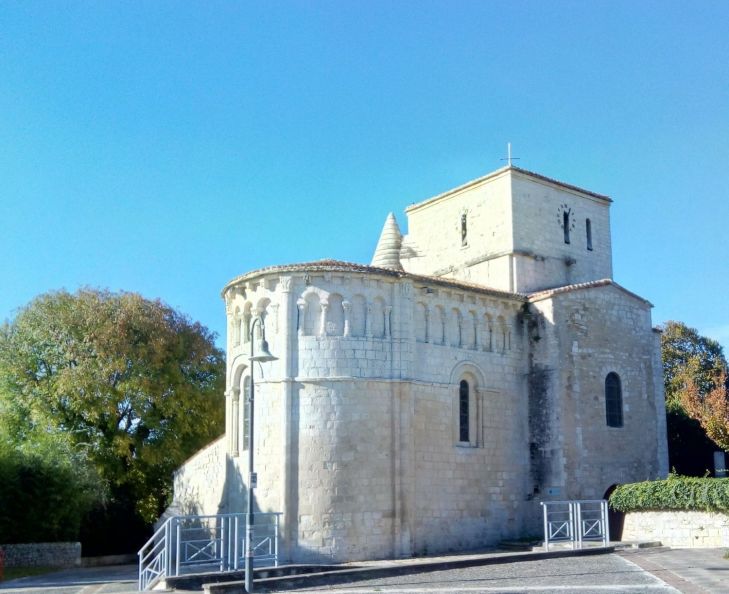 The Church Saint-Étienne (St Stephens) is one of the rare remains of an ancient Benedictine abbey founded in the 11C. Typical of the Saintonge Romanesque style, it owes its modest appearance to significant destruction during the Wars of Religion . A cemetery, some of whose tombs date back to the 17C, was created around the sanctuary. Located in the town center on a hill, it overlooks the former marshes that have now become the Parc de l’Hôtel de Ville or City hall park. It is the last vestige of a Benedictine abbey founded in 1075. Martin, the first abbot, came from the abbey of Maillezais (Vendée dept 85). The Abbey of Vaux had priories at Saint-Sordelin, Saint-Palais, Saint-Augustin, Saint-Sulpice, Thaims, Arces, Grayan, Langoiran, as attested by the Cartulary of Vaux, a manuscript preserved at the BNF (National Library of France). Prosperous in the 13C, with 3000 gold florins (about 360,000 euros) of income, the abbey was ruined by the Black Death of 1348, the Hundred Years’ War and the War of Religion, but an abbot was appointed by the king until the French revolution.