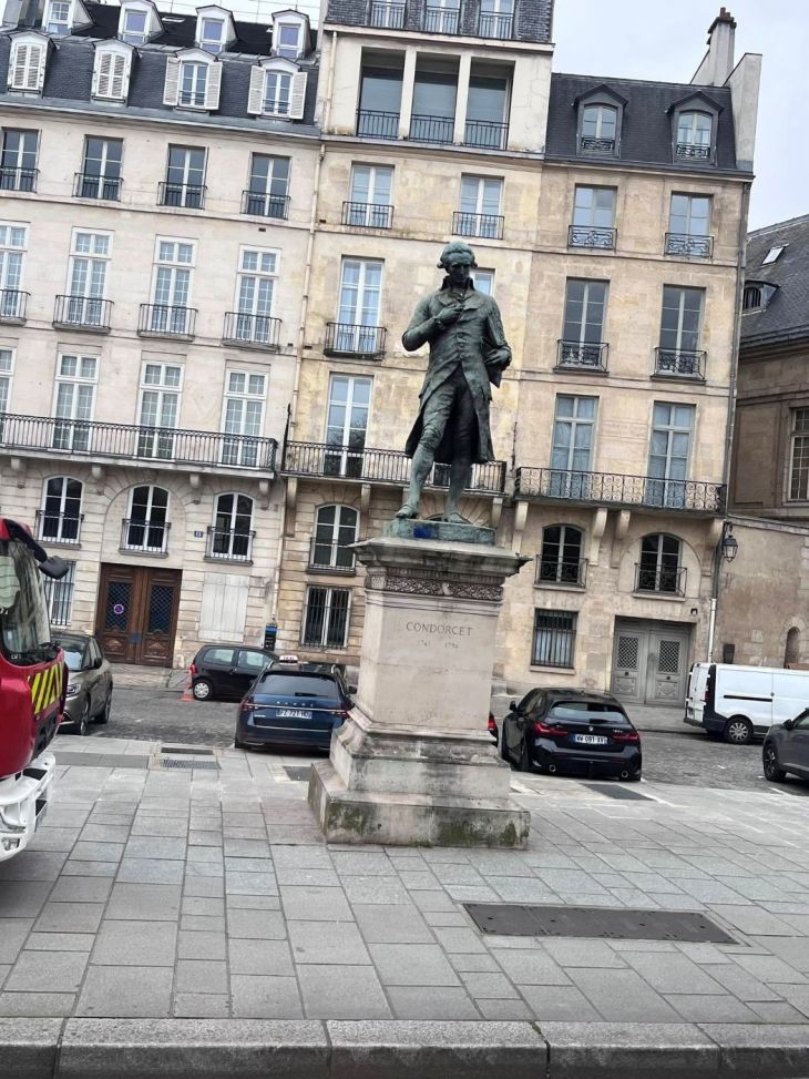 The Quai de Conti is located along the Seine in the 6éme arrondissement of Paris. It is 307 meters long and begins at 2 rue Dauphine and ends at Place de l’Institut. It is one-way, running east-west. This road is so named because the Hôtel de Conti had its main entrance there. On its site were built, among others, the Mint and the Mazarine Library of the Institut de France. Originally, the Nesles Tower was built at the beginning of the 13C and destroyed around 1665. It is cited under the name “rue du quay”, going from the end of the Pont Neuf to the Porte de Nesle in a manuscript from 1636. The 7 July 1817 decree determined the alignment of this quay. The Mint and the buildings located between the Impasse de Conti and the Institut de France are aligned; the remainder is subject to considerable retrenchment. A prefectural decree of 27 April 1814 restored its name to Quai de Conti. Reconstruction work on the quayside was carried out between 1851 and 1853. This resulted in a widening of the public road, particularly in front of the Institut de France, where traffic was already difficult and dangerous at the time !!! The notable buildings on it are at No. 3: Location of the curiosity and jewelry shop at Petit Dunkerque, established around 1760 by Granchez, a native of Dunkirk and jeweler to Queen Marie-Antoinette. No. 11: The Hôtel des Monnaies, which houses the Paris Mint, a public institution responsible, among other things, for managing the Paris Mint Museum, in the former Hôtel de Conti. At this point, between the quayside and the downstream point of the Square du Vert-Galant, the Mint’s dam-lock was established on the Seine. Put into operation in 1853, it operated until the flood of 1910 and was destroyed in 1923, No. 13: Hôtel de Sillery-Genlis; Charles Alexis Brûlart de Genlis, who died guillotined on October 31, 1793 in Paris, was a French field marshal of the 18C, deputy of the nobility during the French revolution. Bonaparte resided there. No. 23: the former Collège des Quatre-Nations, which housed the Institut de France. On its site stood the Tour de Nesle, part of the Philippe-Auguste enclosure. The statue of Nicolas de Condorcet (see photo) placed on Quai Conti, created by the sculptor Jacques Perrin for the centenary of his death on July 14, 1894; was destroyed in 1941, but a second cast was made with the same mold and the statue was reinstalled on its base in 1991. The politician is linked to the history of the district: in fact, he was inspector general of the Hôtel des Monnaies and permanent secretary of the Academy of Sciences, at the Institut de France. In the novel À la recherche du temps perdu or In Search of Lost Time by Marcel Proust, the Verdurins’ salon is located on Quai de Conti. At the end of Rue Mazarine, opposite Pont des Arts, on the current Quai de Conti at the height of Place de l’Institut, was the old “Quai des Nations” which can be found on Delagrive’s map of Paris from 1760 to 1771. At the descent of Pont-Neuf, at the corner of Rue de Nevers, in 1729, was the shop of Widow Pissot, a bookseller who sold the Mercure françois (the first newspaper in French) under the brand sign of the Croix d’Or.