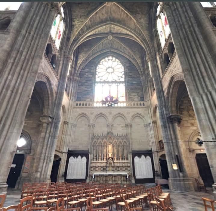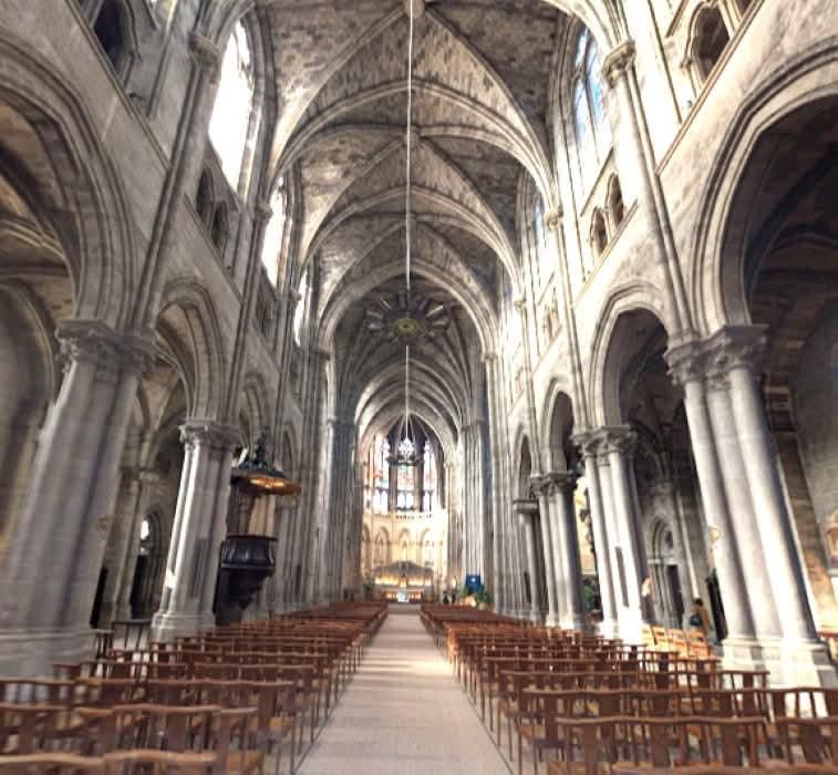 Victor Lambinet sculpted the saints for the altars of the Virgin and the Sacred Heart, located in the arms of the transept. You can also admire the 18C Carrara marble baptismal font. It also has a superb 18C mahogany sacristy from the former Carmelite church, as well as the pulpit lampshade and the transept confessionals. The pulpit dates from 1880.