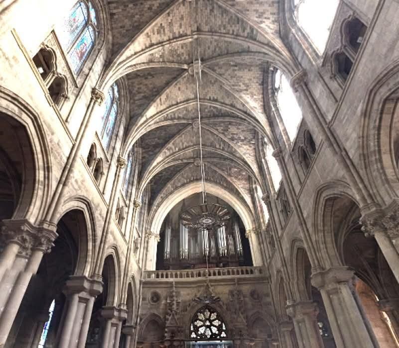 In a very classic Neo-Gothic style, the nave and choir of the Church Saint-Louis des Chartrons are on three levels: large arcades; a blind triforium; and tall windows. In the family of Neo-Gothic churches, the interior of the church offers nothing new. It is a faithful copy of the great works of the 13C.