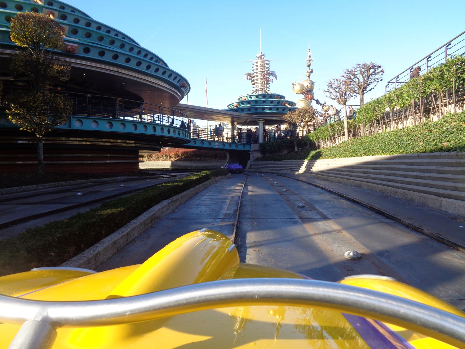 It first opened as Tomorrowland Autopia on July 17, 1955 in the northern part of the land, where it remains today. However, other versions opened within the park: Junior Autopia in Fantasyland, Midget Autopia in Fantasyland, Fantasyland Autopia ,also temporarily called Rescue Rangers Raceway, All of these have since closed, and their spaces have sometimes been repurposed to expand the only remaining Autopia. The new attraction is simply called Autopia, sometimes referred to as “Autopia, presented by Chevron”.Opening: April 12, 1992 in Paris with the park,