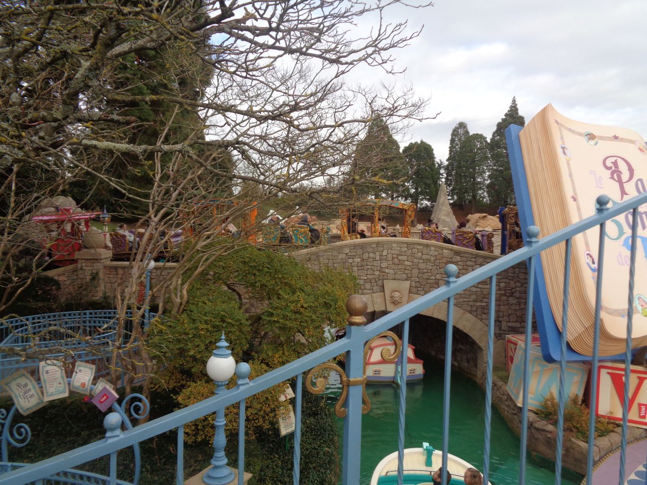 This attraction offers boat trips along miniature 1/12 scale scenery depicting scenes from fairy tales. After exiting the boarding area, the fairy tale-inspired scenes, accompanied by music, unfold on both sides of the canal. The attraction shares its river route with a miniature railway called Casey Jr. – The Little Circus Train, it opened April 3, 1994 in Paris,