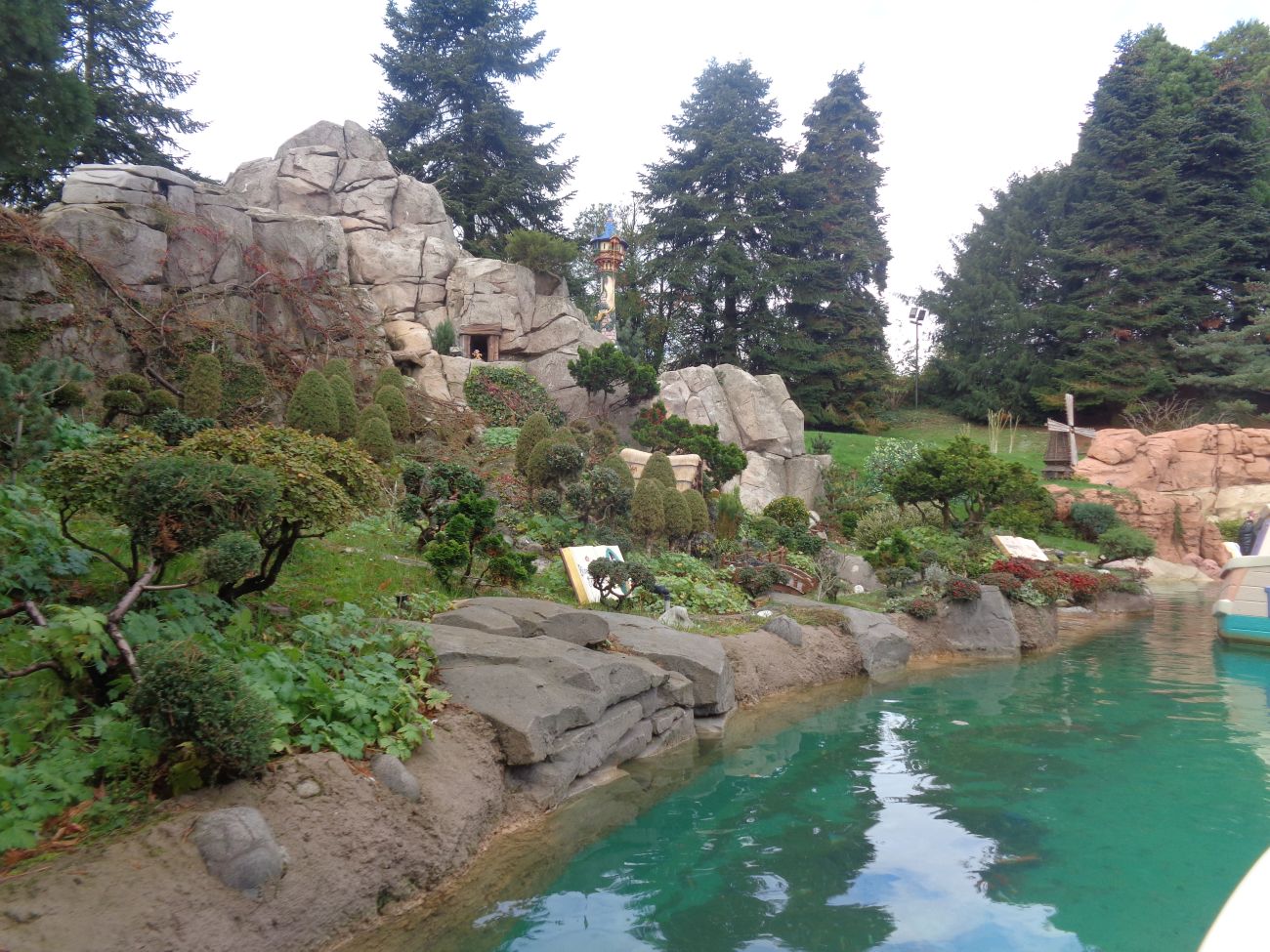 To board the boats, visitors must cross a bridge that leads them to the center of a rotating platform around which the boats are positioned. A giant fairy tale book rests on a writing desk to the north of the platform. Plants are also represented by numerous bonsai trees scaled to fit these miniature scenes, Along your quest, keep an eye out for the following intricately replicated settings, complete with imaginative landscaping, charming music and special lighting effects