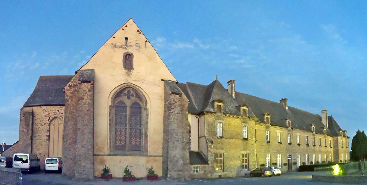 The monastery founded in the 7C by Judicaël became the Abbey Notre-Dame in the 13C The abbey and former monastery on the gothic and baroque styles built on the site of a Priory founded in 645 by Lacy, king of Dumnonia. Benedictine monastery, from its foundation by the order of the Canons Regular of Saint Augustine, the building was intended for monastic and parish uses until the French revolution. The edifice at the beginnig was a benedictine monastery from the 12C of which there is nothing left today.  The western portal of the church includes a statue of the Virgin and Child , this statue, dating from the end of the 13C, is surrounded by praying angels located in the spandrels of the tympanum, an arrangement adopted for the relic gallery of the Sainte-Chapelle in Paris.
