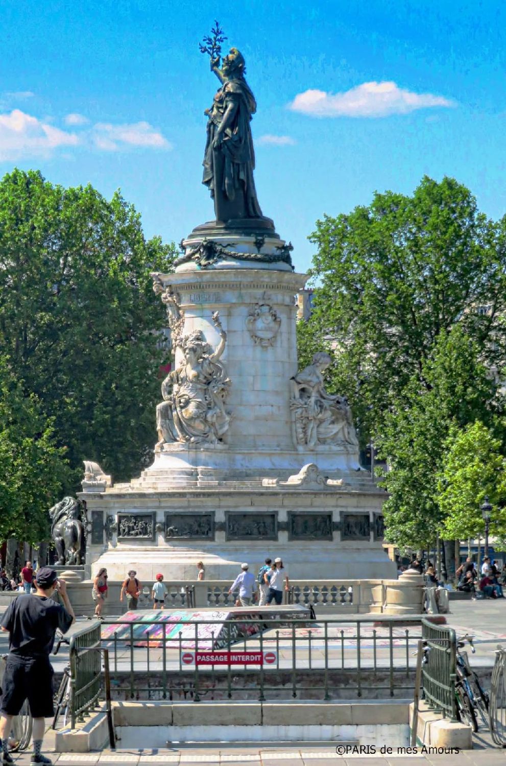 Let me take you back to my eternal Paris again, yes again. Paris is eternal there is no time limit or enough writing on it. We just keep on ticking on Paris forever. This post is due to finding me again a picture in my cd rom vault that should be in my blog for you and me. It is a magical place and one you need to know the schedule or news so not be squeezed in with crowds (strikes), you know what I mean. I am going to tell you a bit more on the Place de la République ! Therefore, here is my take again on the Place de la République of Paris, part II !!! Hope you enjoy it as I.