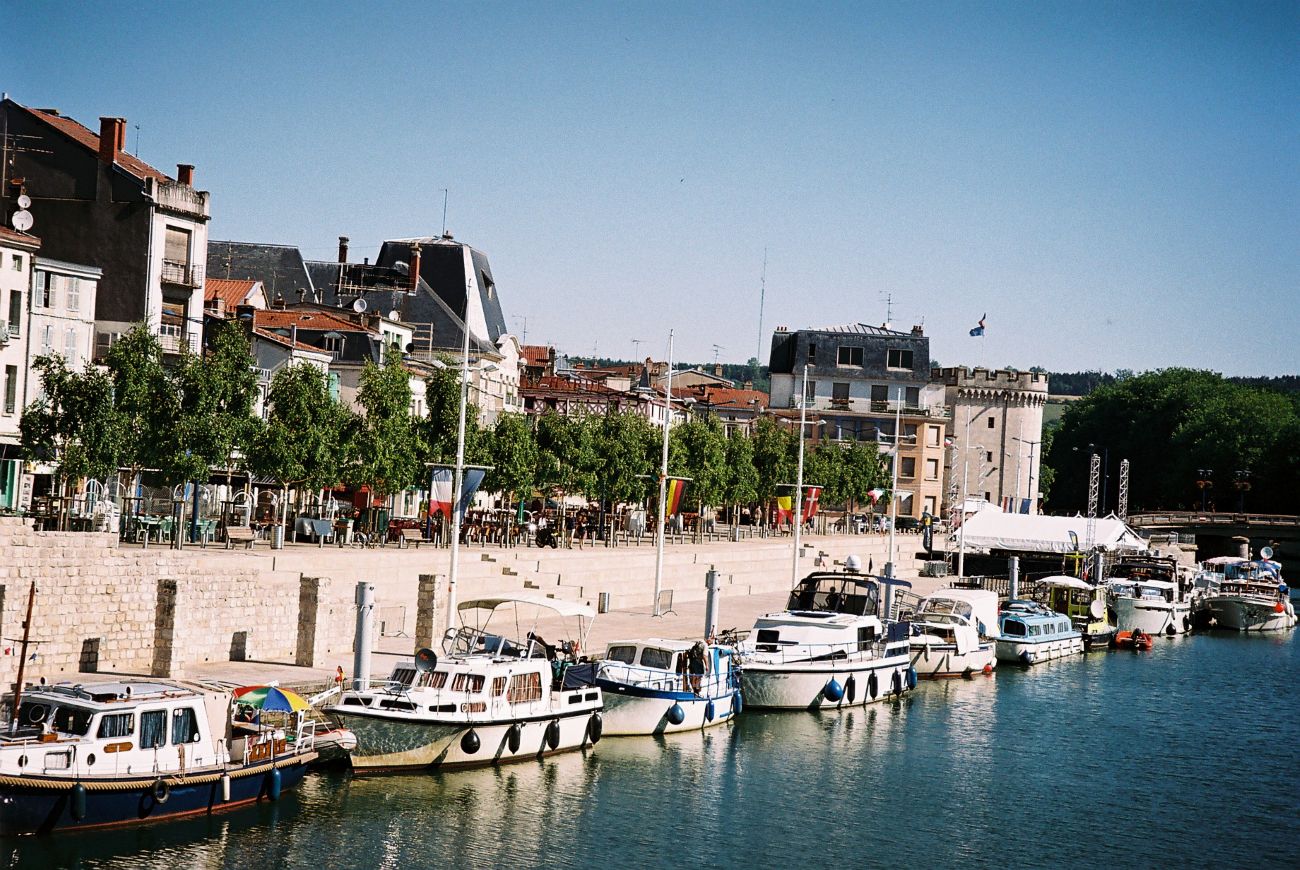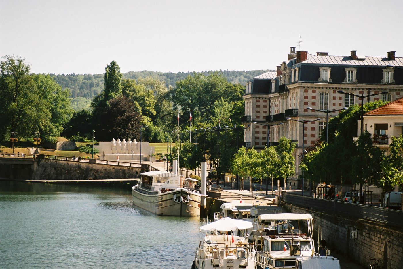 We walked along the quai de Londres to see the Porte Chaussée ! or gate aka Tour Chaussée or tower, is a city gate in Verdun ,built in 1380 along the Meuse river redesigned in 1690, it served as a state military prison from 1755 to 1860 before being bought by the city in 1889. One of the three monumental gates of the Great Rampart of Verdun. The monument is composed of two circular twin towers crowned with battlements 20 meters high, their outer walls are almost 2 meters thick. They are connected by a portico comprising a semicircular portal surmounted by a Tuscan pediment. The monument is Gothic in style, decorated with gargoyles and trefoil carvings. (see pic far on left)