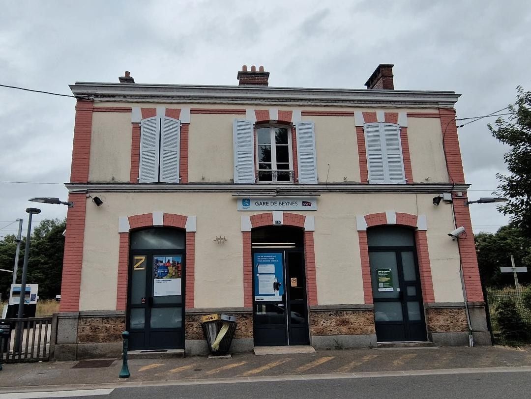 The Gare de Beynes train station is located at 16 Avenue de la Gare (never use it) It is on the Plaisir – Grignon to Épône – Mézières line sitting in between the Plaisir – Grignon and Mareil-sur-Mauldre stations. It was opened on August 30, 1900. This SNCF station has a passenger building with a ticket office, Transilien ATM and the real-time train information system. It is equipped with two side platforms: platform 1 has a useful length of 250 meters for platform 1 and platform 2 has a useful length of 200 meters. Platforms are changed via an underground passage.