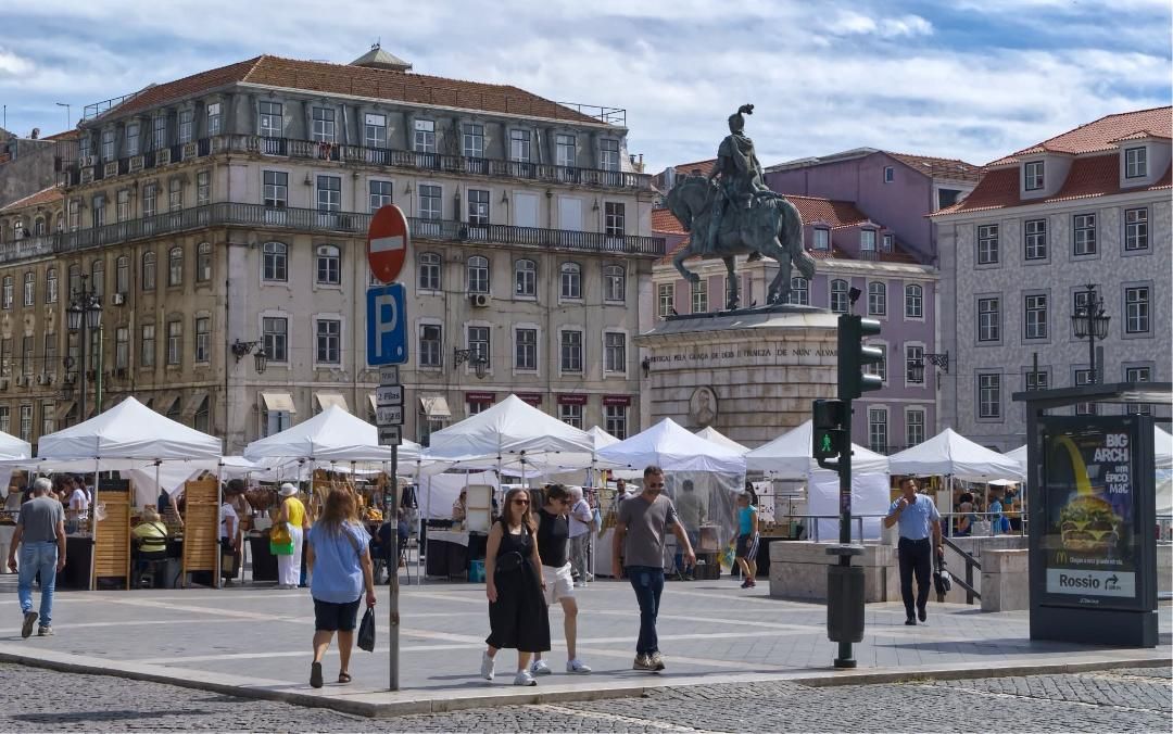 In its center ,see the equestrian statue of King Joao I of Portugal, who reigned over the country from 1385 to 1433 , erected in 1971. You’ll also see on one side towards praça Martim Moniz a sign reading Mercado: Praça da Figueira. This is indeed the descendant of the covered market, which, although much smaller, allows you to do some shopping for seasonal fruits and vegetables as well as local spirits. Today, the four-story buildings are occupied by hotels, shops, and cafes.