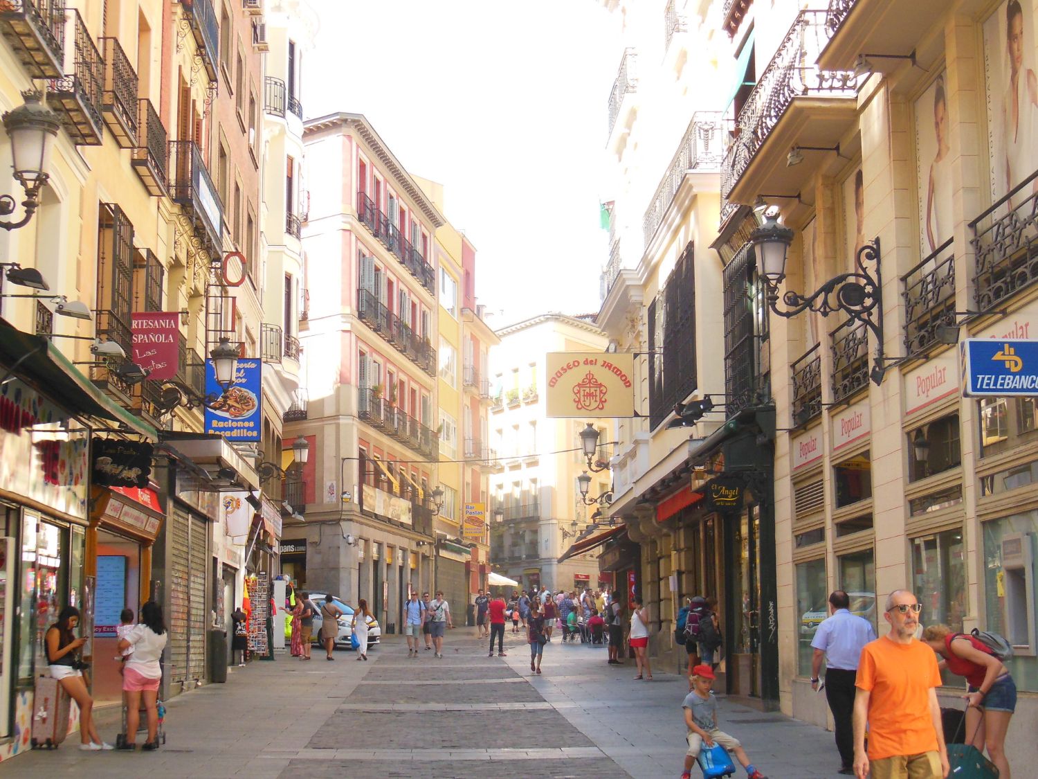 The Calle de Postas is located in the Sol neighborhood of the Centro district of Madrid. It runs Calle Esparteros to its beginning at Calle Mayor to calle Zaragoza , next to the Plaza Mayor. It owes its name to the fact that in ancient times it was the traditional meeting and departure point for the post coaches leaving the Court for different points of Spain, as the original Post Office was located here in the 16C. You can reach this street by many means such as bus Lines 001, 002, 1, 2, 3, 46, 74, as the ones I have used ,and Metro lines 1,2,and 3 Sol station, Also, Cercanías trains C3, C3a and C4 at Sol station, We love to come here as we found the Amorino Gelato italian ice cream at No 3, had indulge in the Flamenco Madrid | Cardamom at No. 4. Its past is documented in 1620 with a building permit to widen the street. At No 31 (new no, 32) stood the Casa de Postas, which had on its portico the painting legendary in miracles and whims of an image of the Virgin of Solitude. At No 17, on the corner of Calle Marqués Viudo de Pontejos, is the traditional Posada del Peine, one of the oldest examples of polychrome tilework in Madrid. The hotel it houses, completely renovated inside, is heir to a long tradition that dates back to 1610, and to the union of three properties over the centuries. The inn also featured in the acceptance speech of Nobel Prize winner Camilo José Cela to the Spanish Academy. In the midst of this picturesque commercial melting pot, the Cine Postas was located at Nos 7 and 9 since 1948, considered by chroniclers as one of the most shady in Madrid, which after degenerating into “Sala X” for a few decades ended up converted into the inevitable souvenir shop for tourists. Even at the beginning of the 21C, more or less old shops survive, such as “Joyería y Relojería Santos”, installed since 1956 at No 21. More traditional is the blanket store “La Camerana” at No 16, founded by Basilio Sánchez Pérez from La Rioja in 1854. But the jewel in the crown is the unique store “El Ángel” (Sobrinos de Pérez or Perez ‘s nephews),at No 6 dedicated to sacred art since 1867 and founded by two other Riojans, Basilio and Leoncio Pérez. Its façade measures just 3 meters and 11 centimeters, making it the third narrowest building in the center of Madrid. For Galdosists, it is one of the emblematic streets of Madrid that Benito Pérez Galdós universalized in his Contemporary Spanish Novels. The Calle de Postas, due to its presence and influence on Galdós’ work, has merited the attention and study of renowned Galdosists. In this commercial hub, the cradle of the 19C Madrid bourgeoisie, Galdós forged the universal history of Fortunata and Jacinta.
