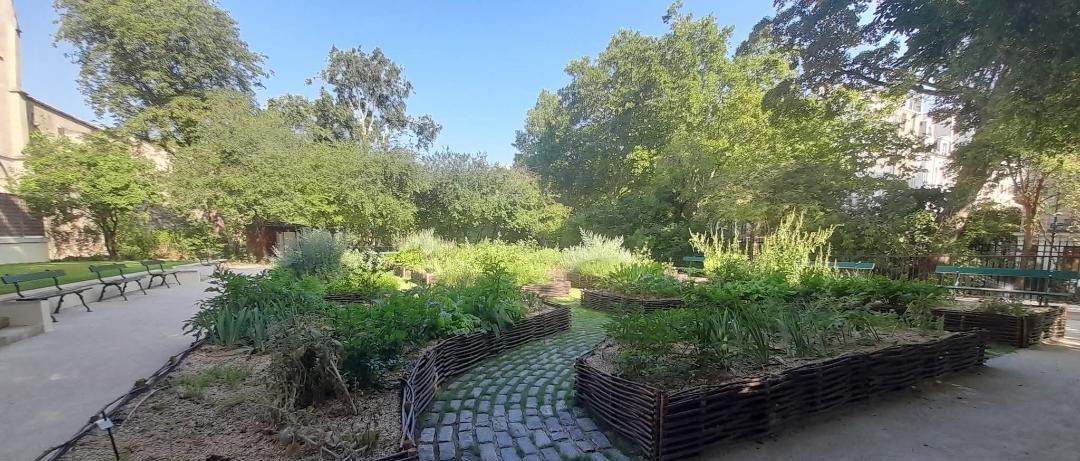 The medieval public garden of Cluny museum is a nice and peaceful green space. Built in 2000, the Medieval garden is inspired from collections of the Museum of the Middle Ages and offers throughout 5000 m² a succession of spaces evoking nature in medieval times. Stroll among the flowerbeds therefore organized according to their use in the Middle Ages : medicine herb garden (sage, hyssop, rue, wormwood) celestial garden (pink, violet, daisies) love garden (thyme, carnations)… the charm of the medieval garden is to recreate an ancient atmosphere while remaining contemporary. Note that in winter, terraces are set off and the garden is planted from April, until about October.