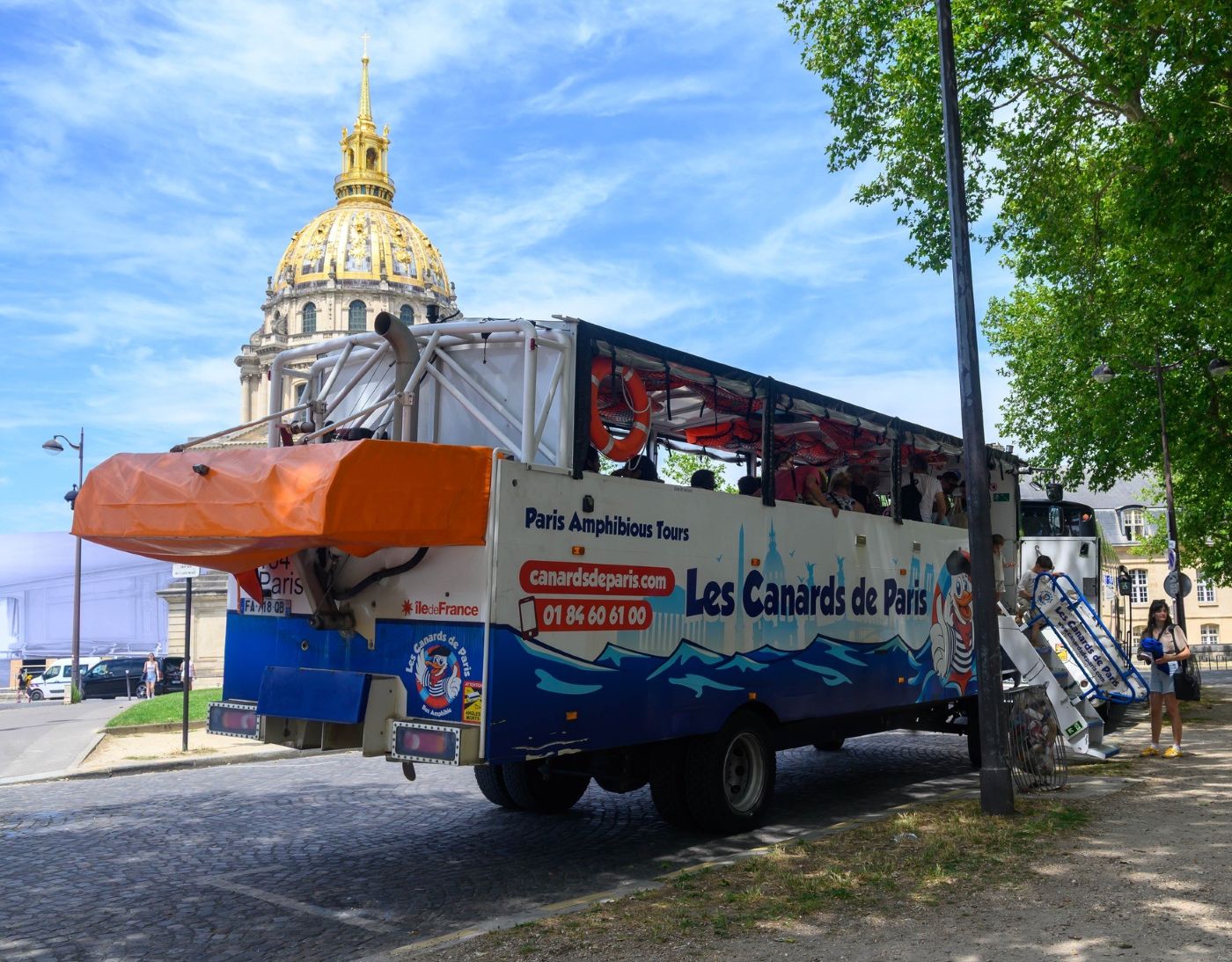 The Canards de Paris or Ducks of Paris, a hybrid amphibious bus, promises a ride like no other through the City, and beyond! With its shape halfway between a bus and a boat, it was originally nothing more than a truck chassis! It took 7 years of work and the participation of many French companies to get it up and running. To board, head to Place Vauban, in the 7éme arrondissement. A departure (and arrival) location that couldn’t have been better chosen since the Hôtel des Invalides and the Eiffel Tower are by there. The tour, on land, then takes us to see some other monuments of western Paris, such as the Pont Alexandre III, the Champs-Élysées, the Arc de Triomphe, the Place du Trocadéro, etc.