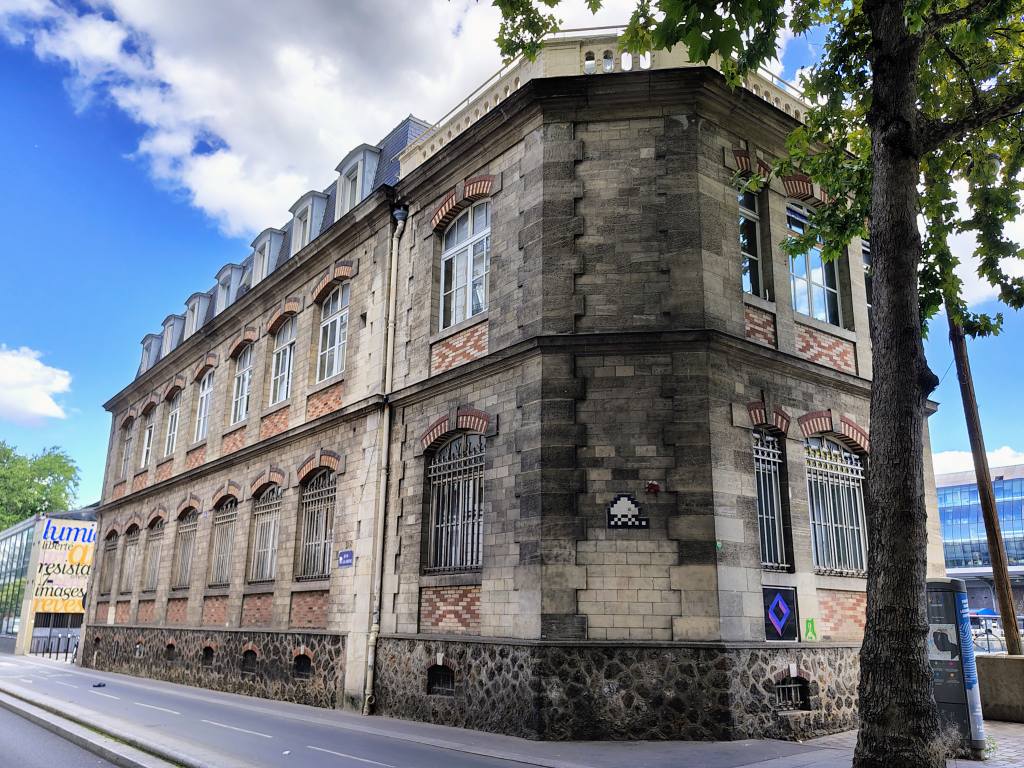 At the southern end of the basin de la Villette, on the quai de la Seine, four cast iron columns seem incongruous… They once supported the nearby metro viaduct. During the redevelopment of Place de la Bataille de Stalingrad, the relocation of supports made them unnecessary. Rather than discarding them, they were used to cover the ventilation system of the underground water treatment plant installed beneath the quay.