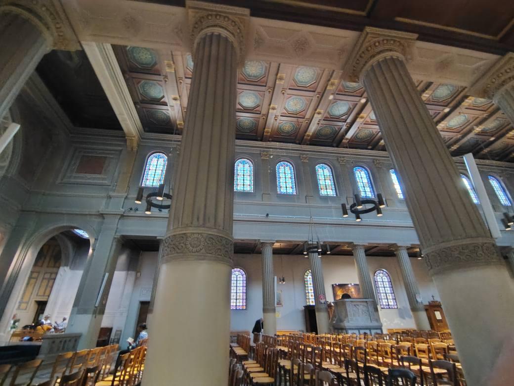 The Church Saint Jacques-Saint Christophe is located at 6 Place de Bitche between the square Serge Reggiani and the Place de Joinville in the 19éme arrondissement of Paris, It was built between 1841 and 1844, To reach, the closest metro are line 7 Crimée and line 5 Laumiére The outside of the Church is of neo-classical style, and bordered, on its facade, by a pleasant square with a music kiosk. Finally the Ourcq canal is a stone’s throw away. In the heart of Paris, the site is quite exotic.