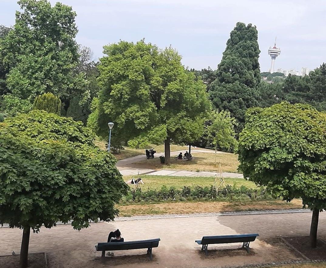 Formerly, the Butte du Chapeau-Rouge was a part of the Pré-Saint-Gervais plain, animated by a guinguette which gave it its name. Here, in the early 1910s, left-wing political movements and unions gathered to defend pacifism against militarism. There, in the middle of a veritable human tide, Jean Jaurès delivered his speech against the three-year law tending to extend military service by one year. The park, with an area of 4.7 hectares, was opened in 1939 in a neoclassical style. Little known to Parisians, the park offers a clear view of the northeastern suburbs of the city. It was used as a setting for several scenes in films,
