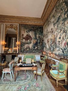 The Hôtel de la Marine itself has a total surface area of 12,000 m2, including 4,000 m2 of built-up area, and has no fewer than 553 rooms, including the famous Salon des Amiraux (see pic). The façade was designed by Ange-Jacques Gabriel, the King’s first architect and author of the plans for Place Louis-XV (which became Place de la Concorde). Its two pediments are decorated with reliefs representing allegories of Public Magnificence and Happiness. The hotel includes four interior courtyards: the Cour des Ateliers, the Basse-Courtyard, the Cour d’Honneur and the Cour de l’Intendant, the latter covered by a spectacular 300 m2 glass roof. The loggia adjoining the Salon des Amiraux, nicknamed the balcon de l’État “or the balcony of the State, offers a breathtaking view of Place de la Concorde. The Mobilier national is still responsible for the furniture of the various National Palaces such as the Élysée (see post). It moved to Quai d’Orsay then rue Berbier-du-Mets , 13éme arrondissement of Paris) and never returned to his original walls.