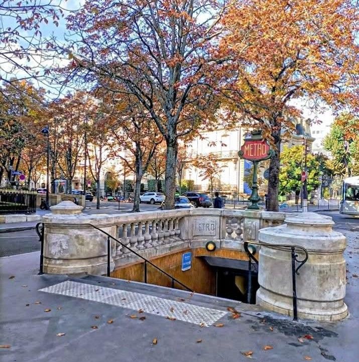 The metro Franklin D. Roosevelt is on lines 1 and 9 , located in the 8éme arrondissement of Paris. The station is underground, on the border between the Champs-Élysées and Faubourg-du-Roule quartiers or neighborhoods, near the Champs-Élysées roundabout. The stops for the two lines, approximately 200 meters apart, are located: on line 1, under the Avenue des Champs-Élysées, at the Rue Marbeuf intersection ,and on line 9, under Avenue Montaigne, (see pic) at the end of the roundabout. The station has five entrances, the first two of which are only accessible from the platforms of line 1, as its stop was originally independent of that of line 9. Entrance no. 1 “Champs-Élysées”; Entrance no. 2 “Rue de Marignan”; Entrance No. 3 “Avenue Montaigne”; Entrance No. 4 “Rond-Point”; Entrance No. 5 “Avenue Franklin D. Roosevelt – Palais de la Découverte”. The lower section of the Champs-Élysées shopping district, its shops and restaurants. The upper section of the Champs-Élysées gardens, including: the Carré Marigny, with the stamp market , the Théâtre Marigny, the Théâtre Vrai Guignolet, and the Carré du Rond-Point, with the Théâtre du Rond-Point.The Grand Palais, its national galleries, and the Palais de la Découverte.The Petit Palais. The headquarters and studios of the radio stations: Europe 1, RFM, and Virgin Radio, at 26 bis and 28, rue François-Ier. The station opened on July 19, 1900, with the commissioning of the first section of metro line 1 between Porte de Vincennes and Porte Maillot. It owes its initial name of Marbeuf to its proximity to Rue Marbeuf. On May 27, 1923, the Line 9 station opened with the inauguration of its section between Trocadéro and Saint-Augustin; it was then named Rond-Point des Champs-Élysées in reference to the eponymous intersection it served. A connecting corridor was built and opened on October 6, 1942; on this occasion, the new station took the name Marbeuf – Rond-Point des Champs-Élysées aka Champs-Élysées – Marbeuf. Then the station was renamed Franklin D. Roosevelt on October 30, 1946, following the renaming of Victor Emmanuel III Avenue to Franklin D. Roosevelt Avenue, in homage to Franklin Delano Roosevelt, head of state of an allied country during WWWII, replacing that of an enemy country (Italy) although allied during WWI.