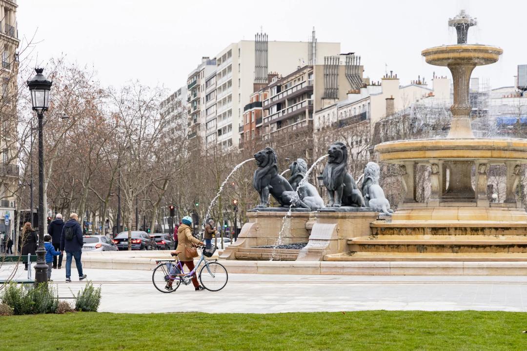 The Place Félix-Éboué, previously called Place Daumesnil, is located in the Picpus neighborhood or quartier of the 12éme arrondissement of Paris. The Place Félix-Éboué forms a crossroads with Avenue Daumesnil, Boulevard de Reuilly, Rue de Reuilly, Rue Claude-Decaen and Rue Lamblardie. It is served by metro lines 6 and 8 at the Daumesnil station. It has borne its current name since 1947. The name of the square is a tribute to the colonial administrator and French politician Félix Éboué who was one of the very first to rally to Free France from General de Gaulle in August 1940. The square is set up on the site of the Barrière de Reuilly on the wall of the Farmers General, was first called place de la Barrière-de-Reuilly, then, in 1864, place Daumesnil. The center of the square is adorned with the fontaine du Château d’eau fountain aka fontaine aux lions or Lions Fountain, a work by Gabriel Davioud, commissioned by Haussmann. The fountain was originally located in the Place du Château d’Eau (now Place de la République) before being moved to its current location in 1880, when the Monument to the Republic by the brothers Léopold and Charles Morice was installed.