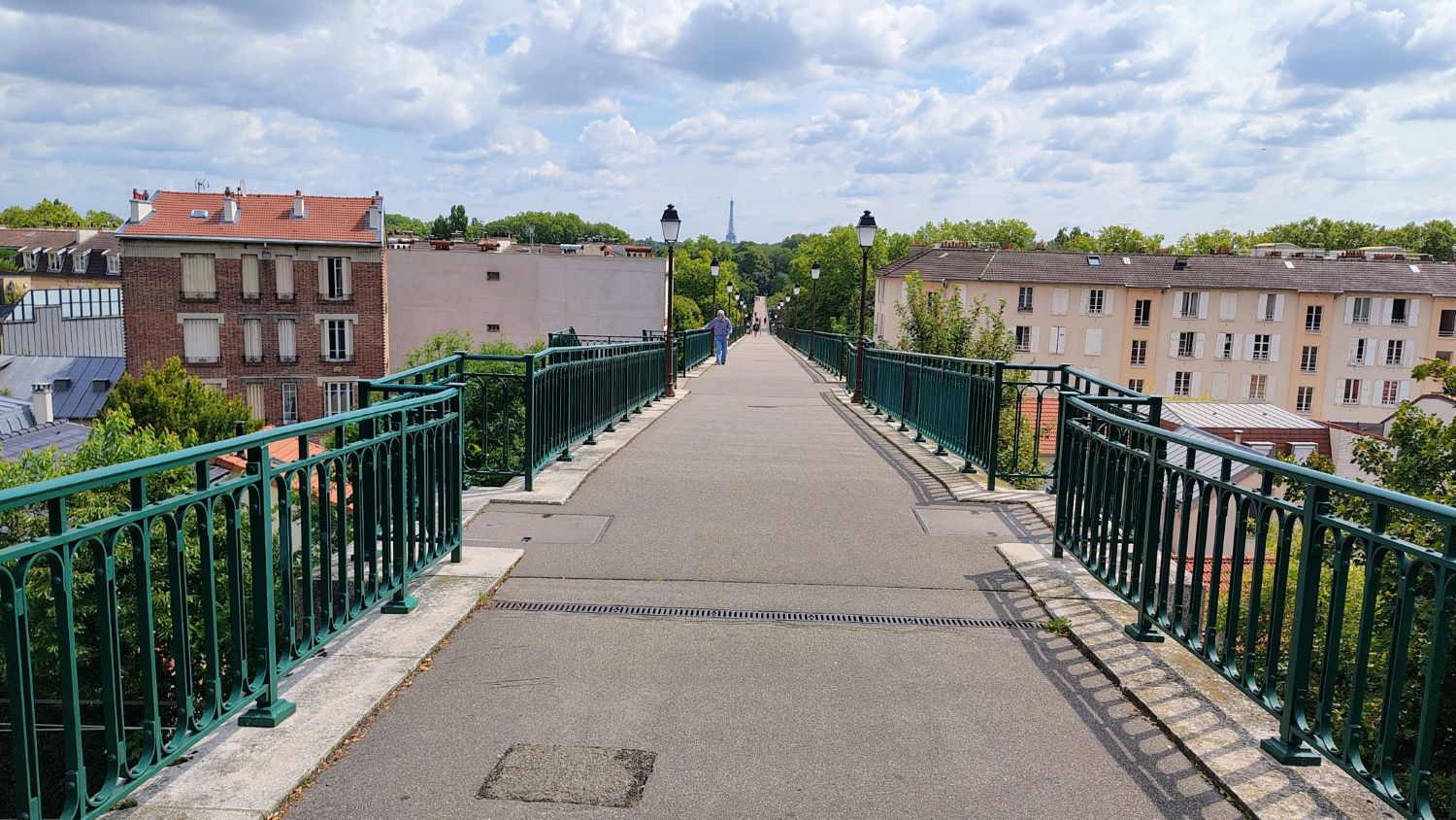 We find ourselves on this entirely pedestrian footbridge, which majestically unfolds towards the Eiffel Tower. Used daily by walkers and cyclists, it connects Paris to Saint-Cloud via the Bois de Boulogne. From the very first steps, one is struck by the spectacular view: on one side, a majestic tree, on the other, streetlights that seem to disappear into the Bois de Boulogne, with the Eiffel Tower as a backdrop. The Avre Footbridge, built at the end of the 19C, is an integral part of an aqueduct bridge that was part of the eponymous aqueduct. The latter was an essential part of the system that supplied Paris with water from the Eure-et-Loir rivers to the Saint-Cloud reservoir. Even today, this footbridge supports the water pipe that provides Paris with approximately one-fifth of its daily water needs. In 1891, the Avre aqueduct bridge included springs and deep wells spread within a radius of 175 km around Paris on the one hand, and river water treatment plants on the other.