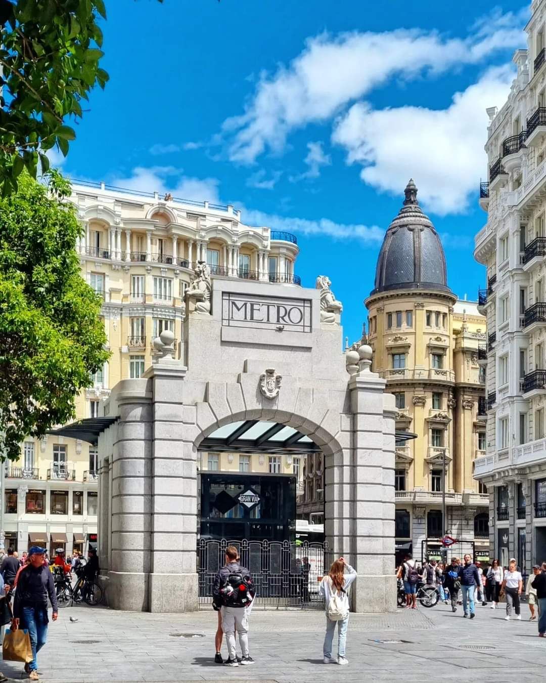 The Gran Vía is entirely located in the Centro or city center district, it extends over the districts of Justicia, Parlamento, Sol, Universidad and Palacio, for a total length of 1 300 meters (4290 feet). It comprises three sections, the first of which extends from Calle de Alcalá to Plaza San Luis, the second to the Plaza Callao and finally the third to the Plaza de Espana. Opened on 15 July 2021, the recently refurbished Gran Vía metro station has been fitted with a replica of the original entrance. (see pic), The original structure, also known as the San Luis Network Temple (alluding to the Square of the San Luis Network in which it was located and the first name of the metro station, which was later changed to Gran Vía), was standing from 1920 to 1970 , The large shelter has been made out of glass and iron and is totally translucent, allowing light to enter through the lift shaft. A rounded arch finishes off the construction with the city of Madrid’s coat of arms hand sculptured in stone. At the Gran Vía station, there is also a small museum with archaeological remains that appeared during the excavation works and extension of the station, which can be found on the second intermediate level.