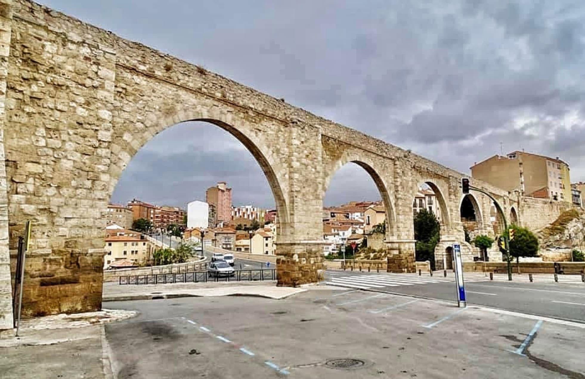 El acueducto de los Arcos o Traída de las Aguas or the Aqueduct of the Arches or Traída de las Aguas is one of the most important engineering works of the Spanish Renaissance. Construction of the Traída de Aguas (Water Supply) began in 1537, drawing water from Peña del Macho, a spring located halfway between Teruel and Valdecebro. In 1551, the Teruel Council commissioned Quinto Pierres Bedel, an architect of French origin who had successfully completed the complicated underpinning of the Mudejar tower of San Martín Church, to restart construction of the Traída de Aguas (Water Supply). This required laying a 4,450 meters pipeline made from around 12,000 ceramic arches; it had 140 manholes and two underground mines of around 190 meters long, crossing two ravines by means of arcades. Two new arches and a mine were later added to improve the layout at three problematic points. The Los Arcos aqueduct were completed in 1554.