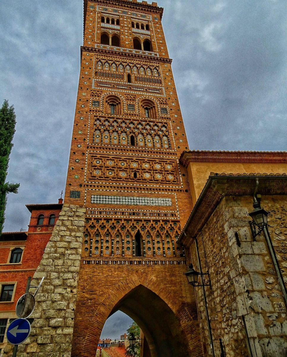 The Torre San Martín tower is an Aragonese Mudejar building listed as a World Heritage Site in 1986. It was erected in 1316 and renovated between 1549 and 1551, when a stone base was added. It is located in the Plaza de Pérez Prado, opposite Calle de los Amantes. It is a brick gate-tower with glazed ceramic ornaments beneath which the Andaquilla slope passes. It is accessible at its base through a pointed vault. Three of its faces are visible on the first level, as the fourth is attached to the Baroque Church of San Martín. The tower imitates the structure of the Almohad minaret with two concentric square towers between which the stairs are located. The interior tower has three superimposed floors covered with a ribbed vault.