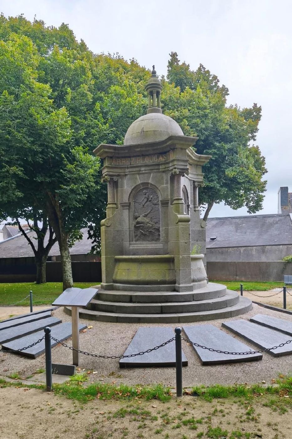 The war memorial bears the names of 393 people who died for France, including 212 during the Great War or WWI, 181 during WWII, 12 during the Indochina War, 4 during the Algerian War, and 14 other people who died on other dates. Plougastel-Daoulas is one of the few towns in France where the number of deaths for France was almost as high during WWII as during WWI, due to those killed during the Liberation battles in 1944.