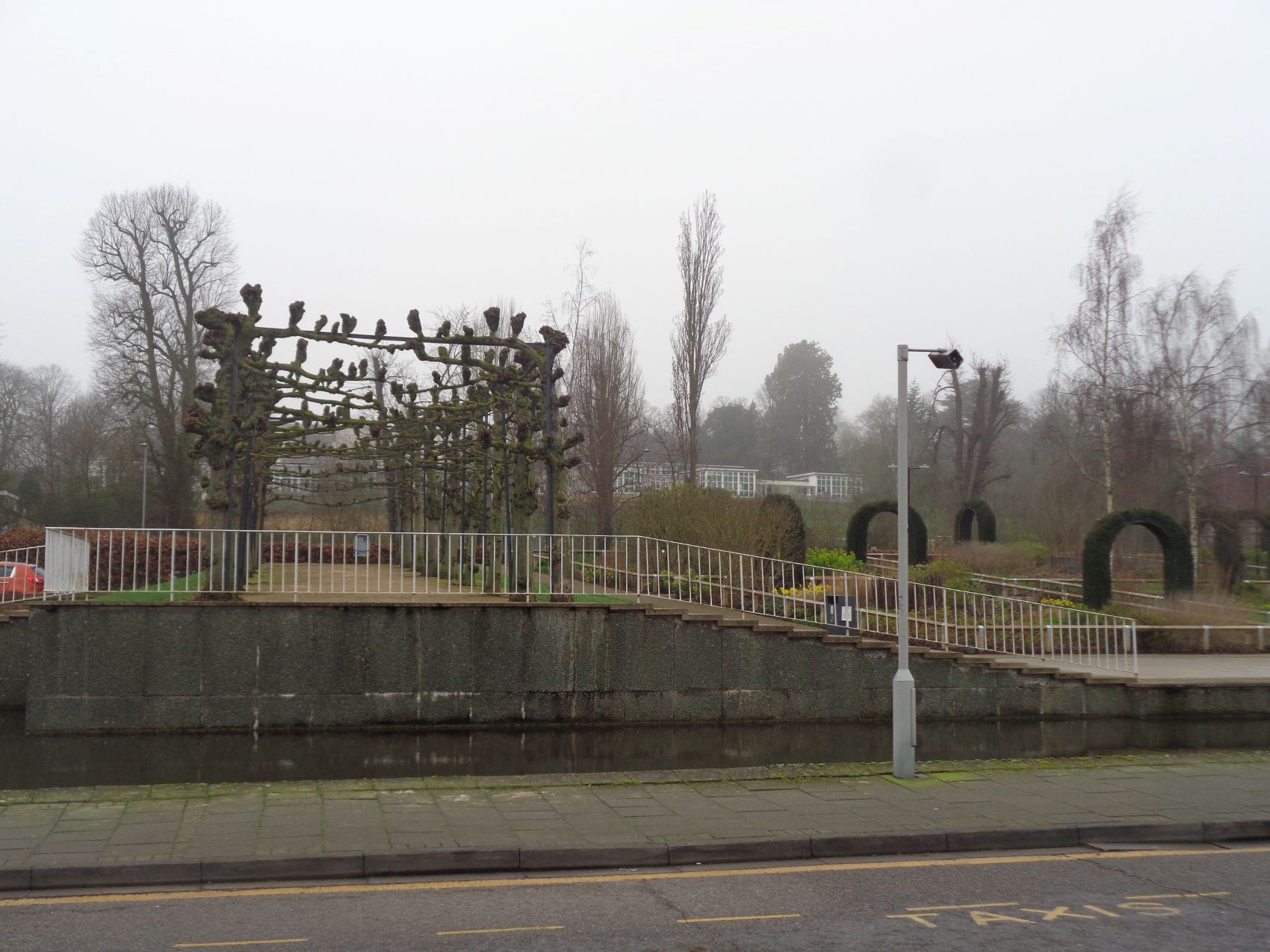 The Jellicoe Water Gardens a pretty garden promenade along the Gade river with a serpentine walkway surrounded by a massive flower garden,A canal with delicate bridges carries visitors from the town car parks to the shopping centre.The canalside walk has balconies projecting over the water. Underlying the design is the form of a serpent with a howdah strapped to its back.