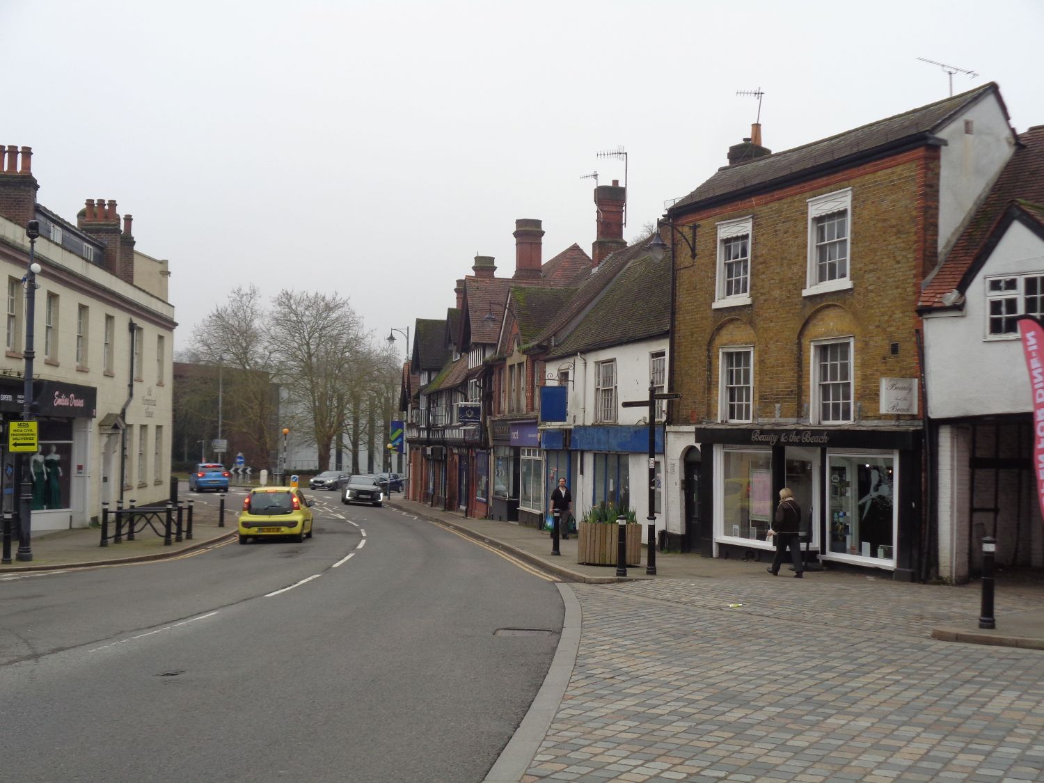 The Old Town in Hemel Hempstead has buildings dating back to the 1500s, though it is believed there has been settlement here since Roman times. Henry VIII used to rampage his way through here, and had a hunting lodge nearby, plus there are rumours of secret tunnels and trysts with Anne Boleyn. He is reputed, as is Anne, to haunt at least one building in the Old Town. The neighborhood has a mix of architectural styles, from half-timbered Tudor buildings, to Georgian shops and apartments to the Victorian splendour of the rebuilt Corn Market, In the picture we were driving along Queensway in the Old Town,